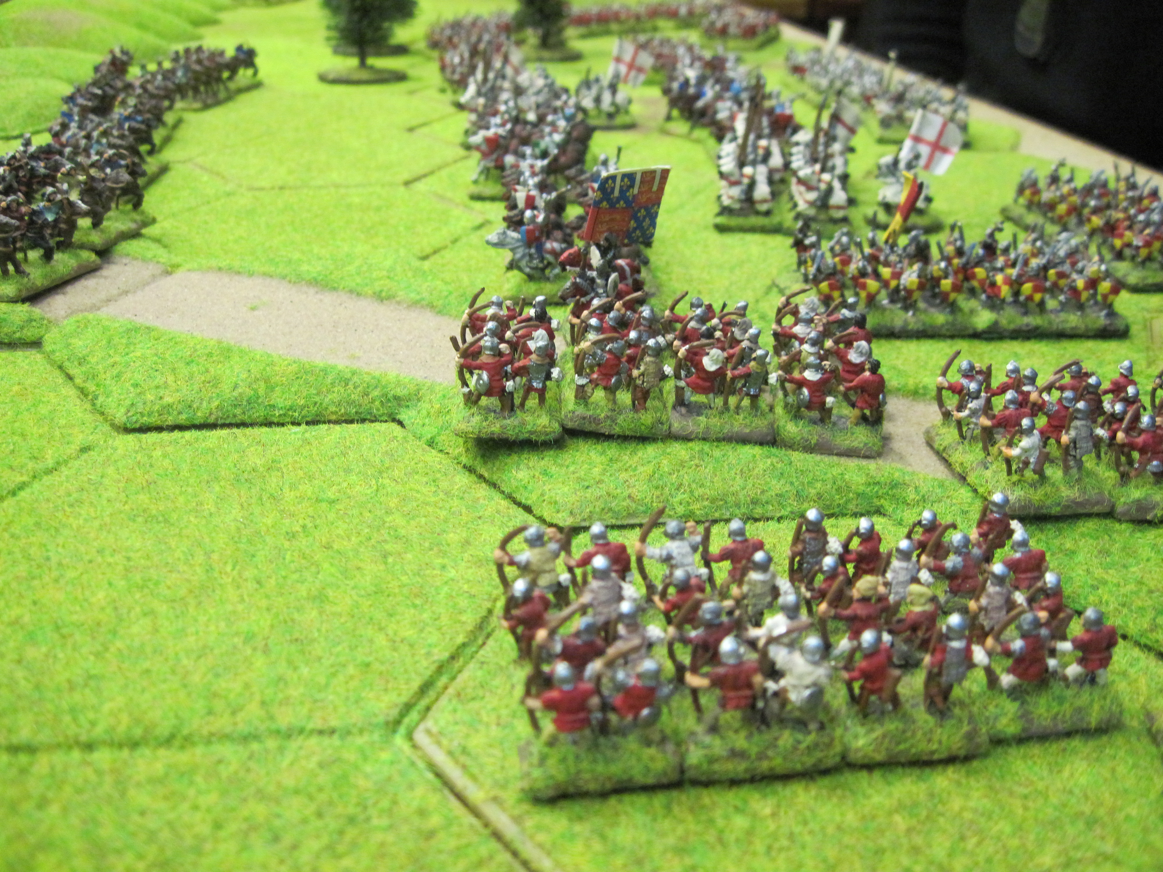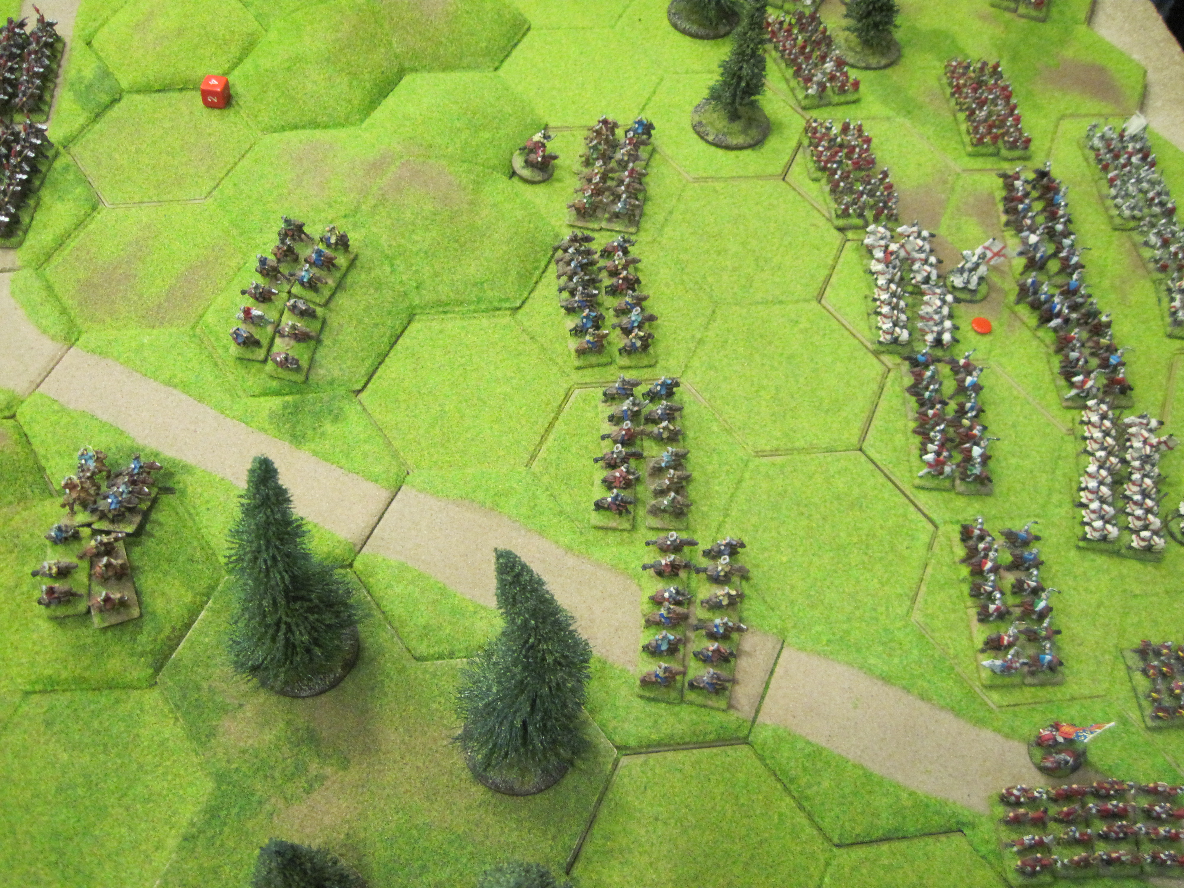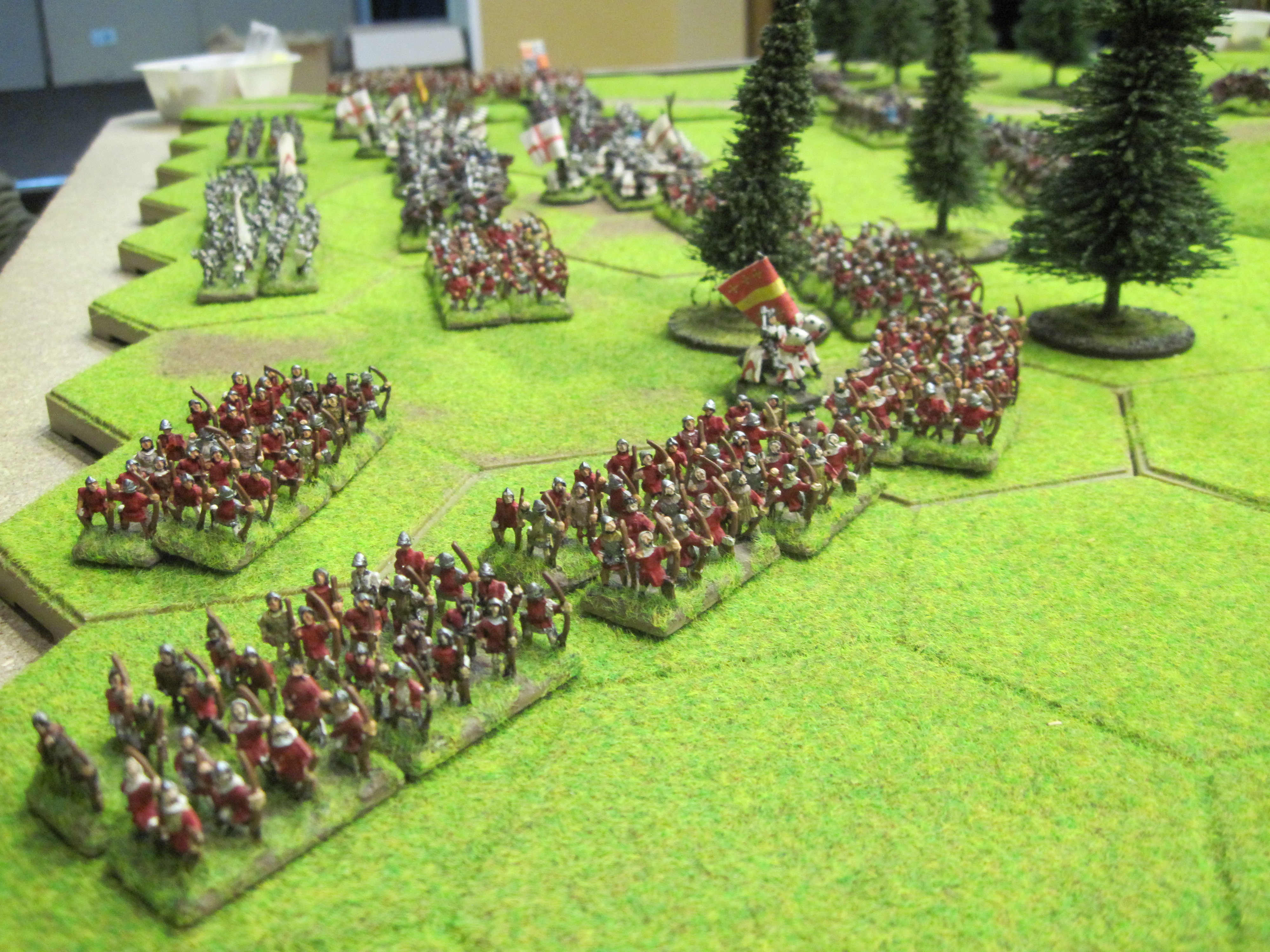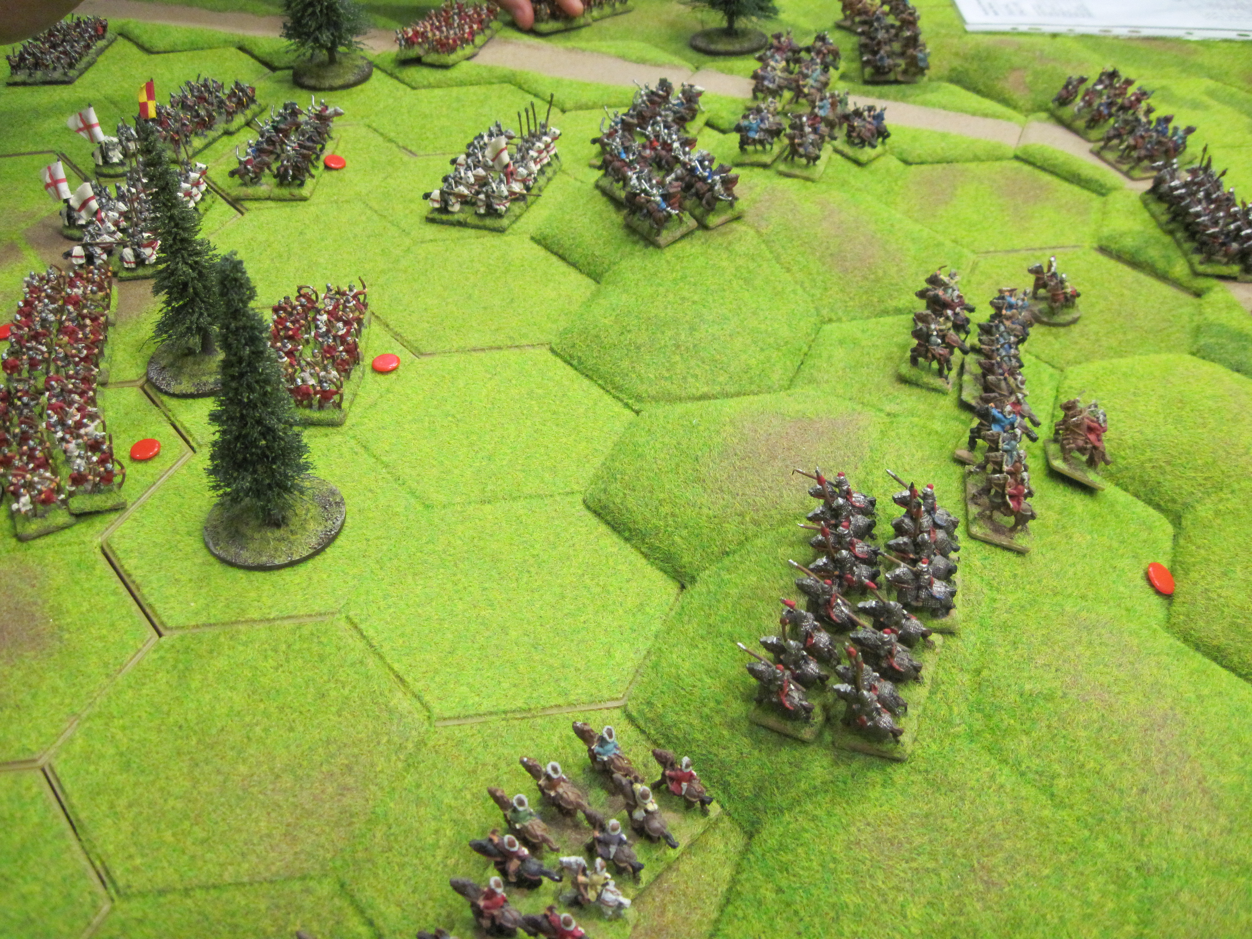 The English army deployed in a deep formation covering only halve the width of the table, but within easy reach of forest hexes and astride a road which could aid speed of movement a characteristic which the Mongol army already possessed in abundance.