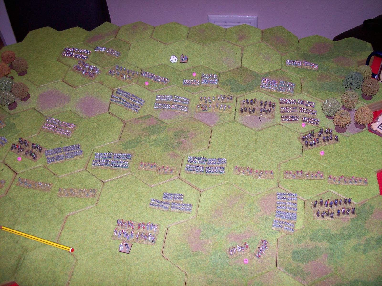 I ignore the command range restrictions on this game as there is only 1 commander per side.