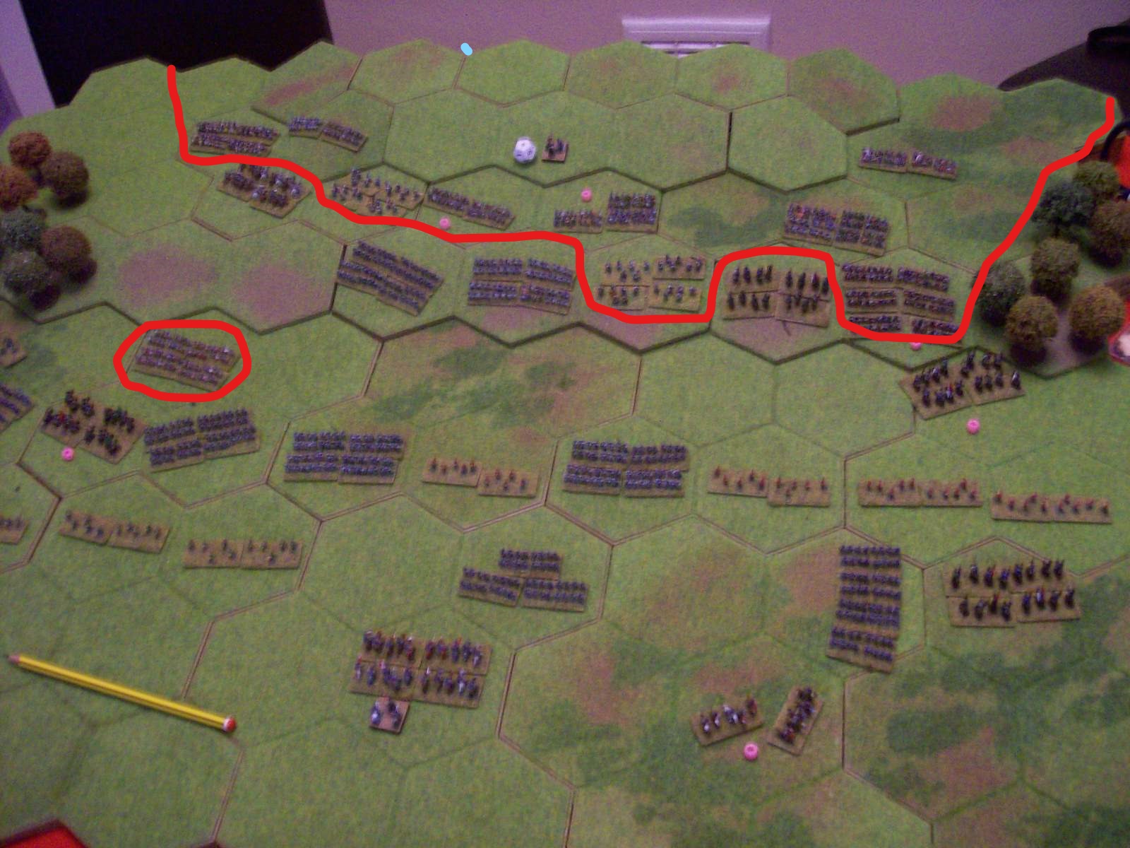 Saxon turn. As the line has been broken a unit is committed to try regain the line