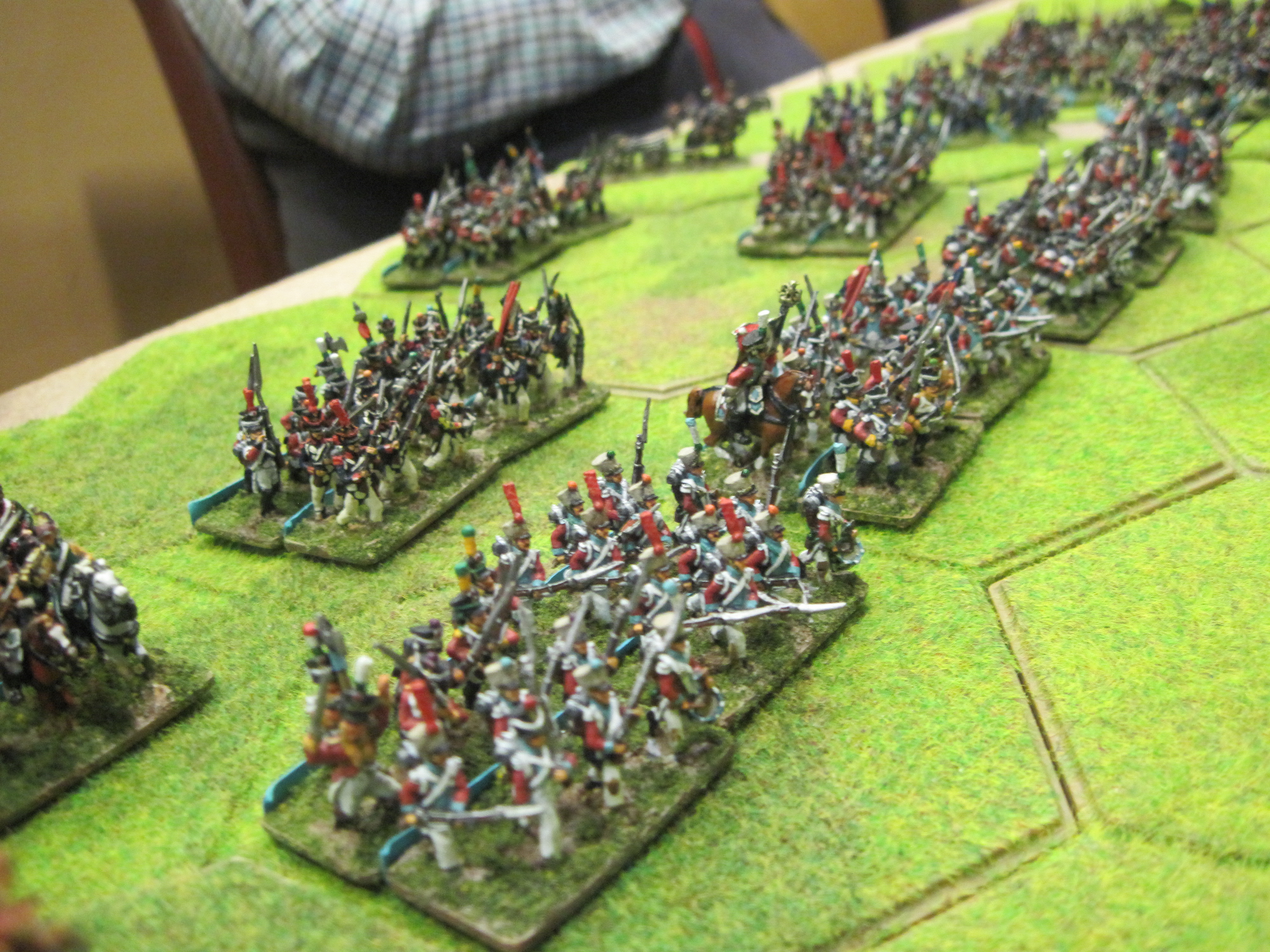 A really interesting and lovely looking game. These are the two armies that I would most like to do for this period. I know you quite like showing infantry formations as two bases deep (the sense of mass it brings to the hex is superb), but I wondered, this being French / Russian, the depth of unit does not look out of place, but if you were putting a British army on the table, would this system require them to look more like line i.e. a single base depth rather than 2 bases deep?