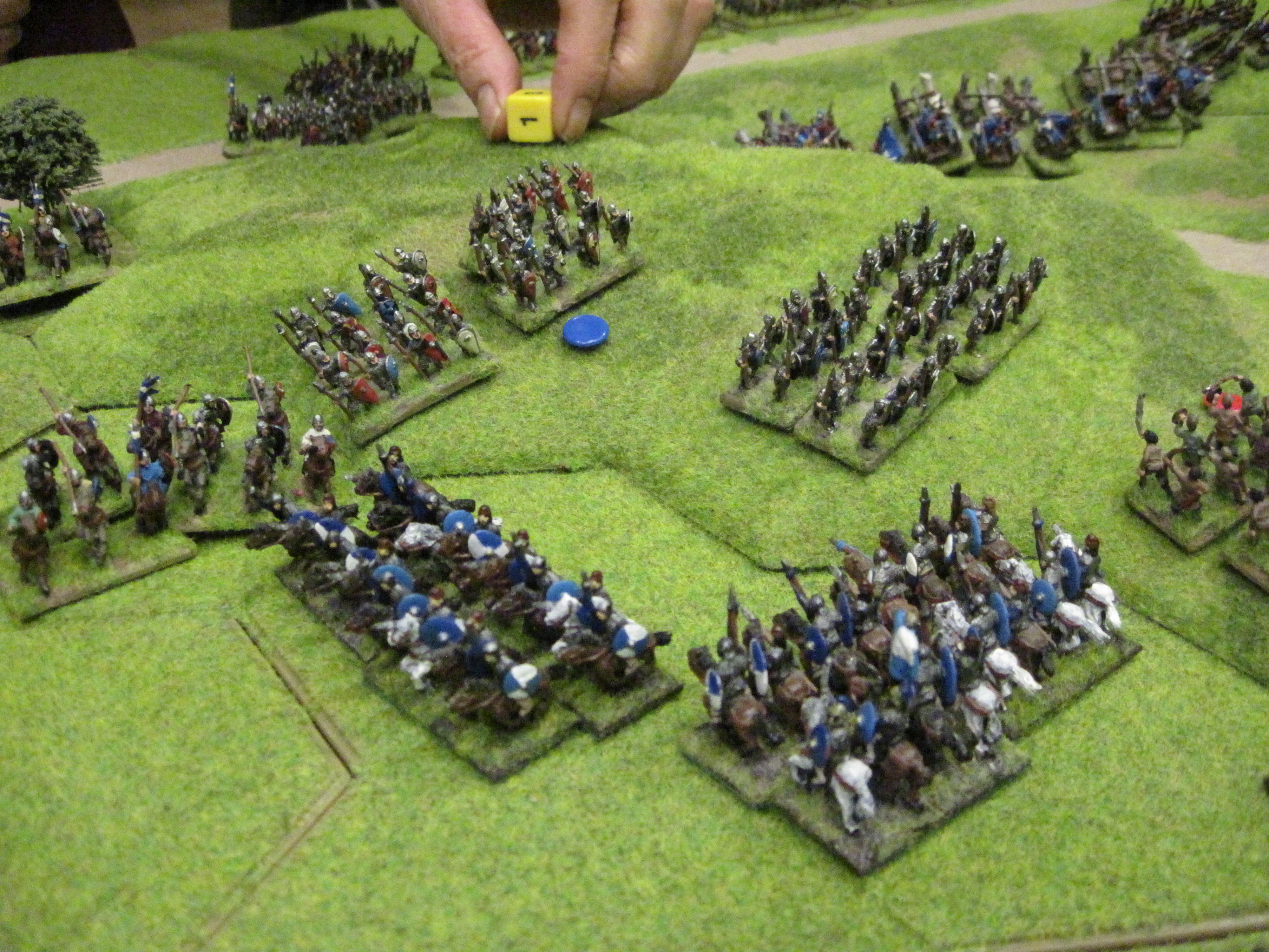 Within a couple of game turns the Brits were in full retreat as the Norman cavalry had proved unstoppable, and rather than per long the agony, the British commanders conceded the game so that we could have time to set-up for a second game and a re-match.