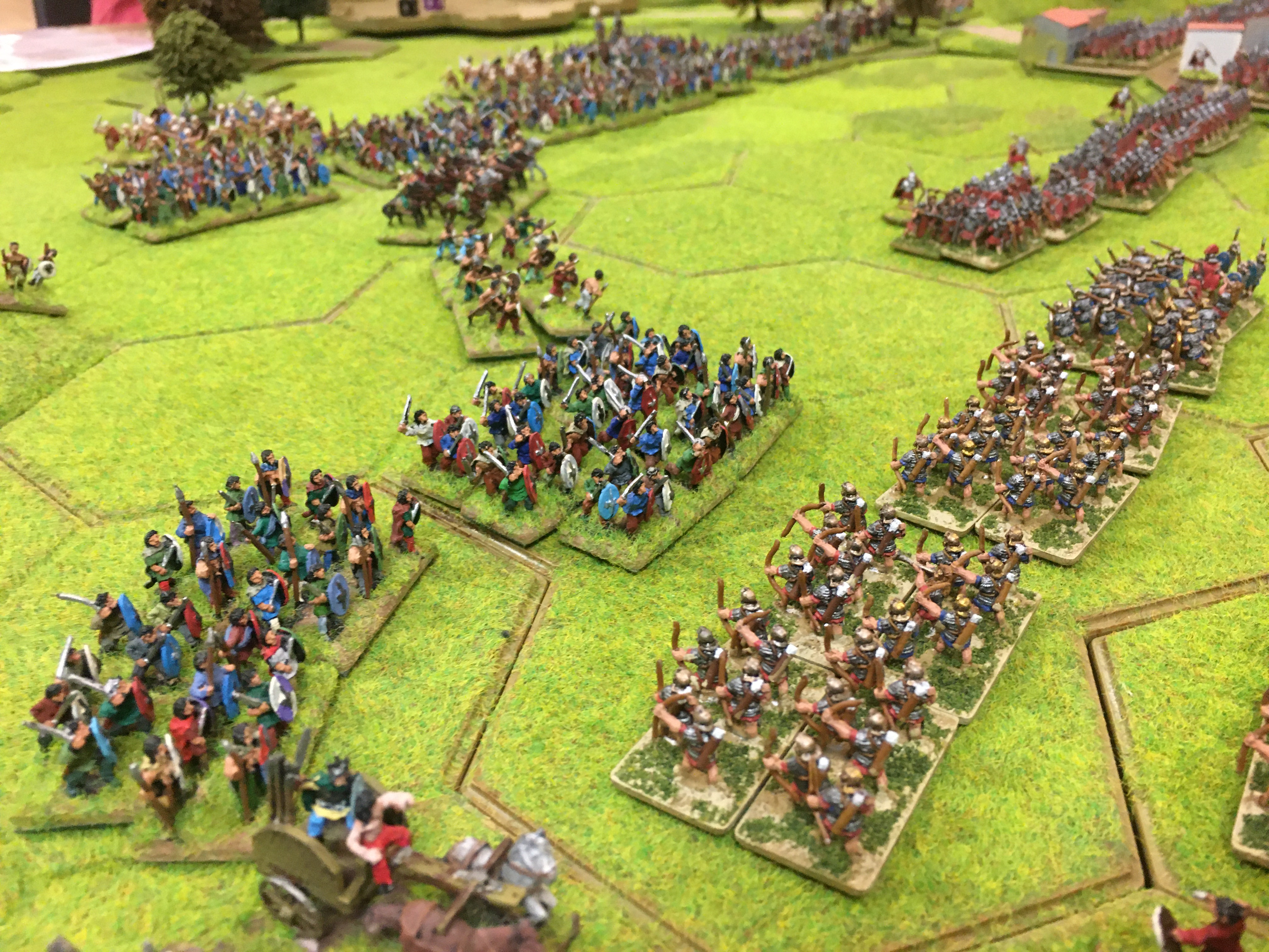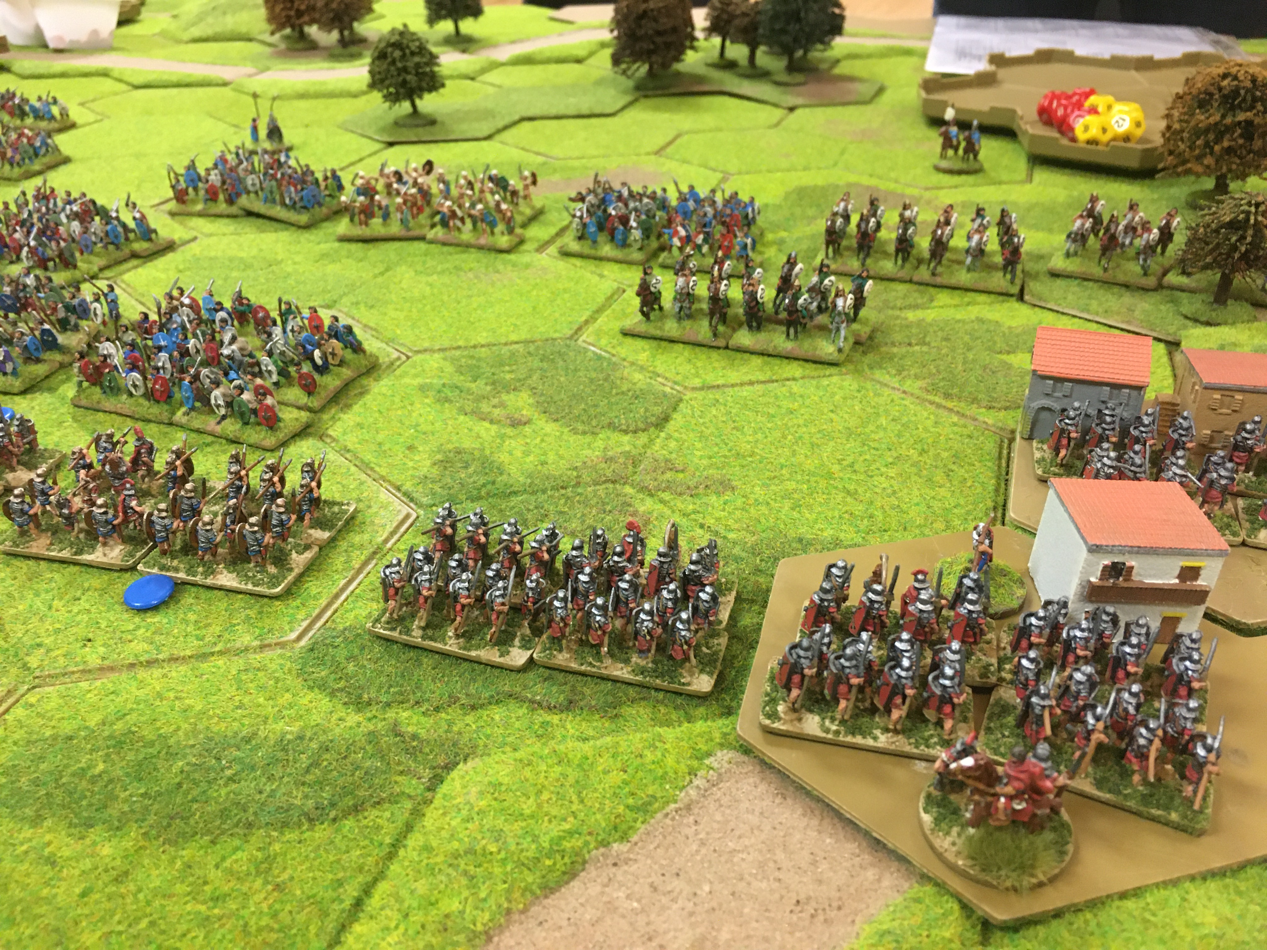 As a stand alone game, in terms of losses, this was a Roman defeat. However, as part of a campaign the British task was to re-capture Reading from the Romans. This they failed to achieve and didn’t really make a serious effort to do. The Brits were content to dispatch Roman auxiliary units to the casualty tray, which left the core of the Roman force intact and still in control of the town and the ground the surrounding ground.