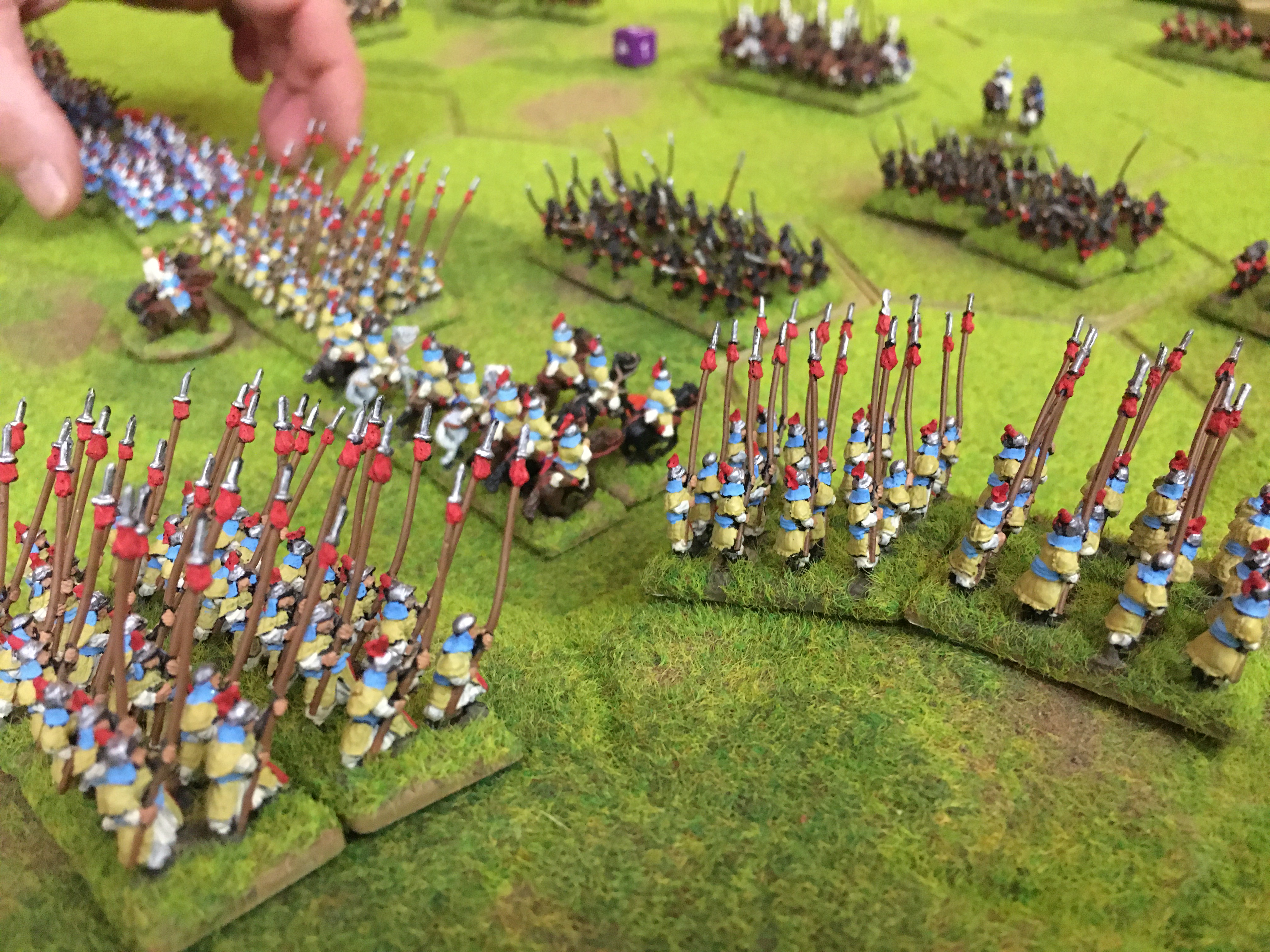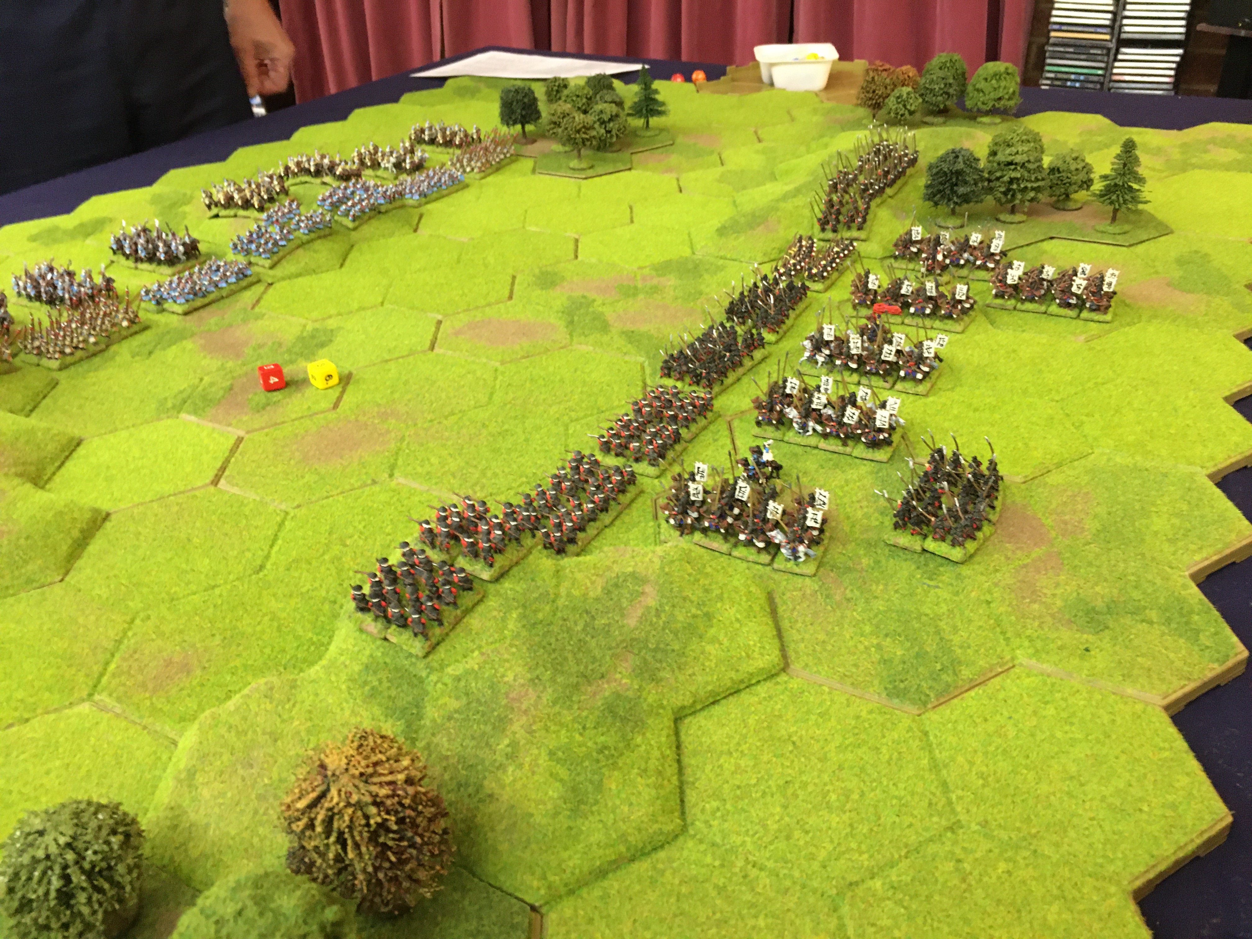 Because H&H is a hex based system it was easy for me to quickly and precisely move, alter face and position all Alex’s units within specific hexes as directed. The camera position worked well although I think we will be able to improve this still further for the next game.
