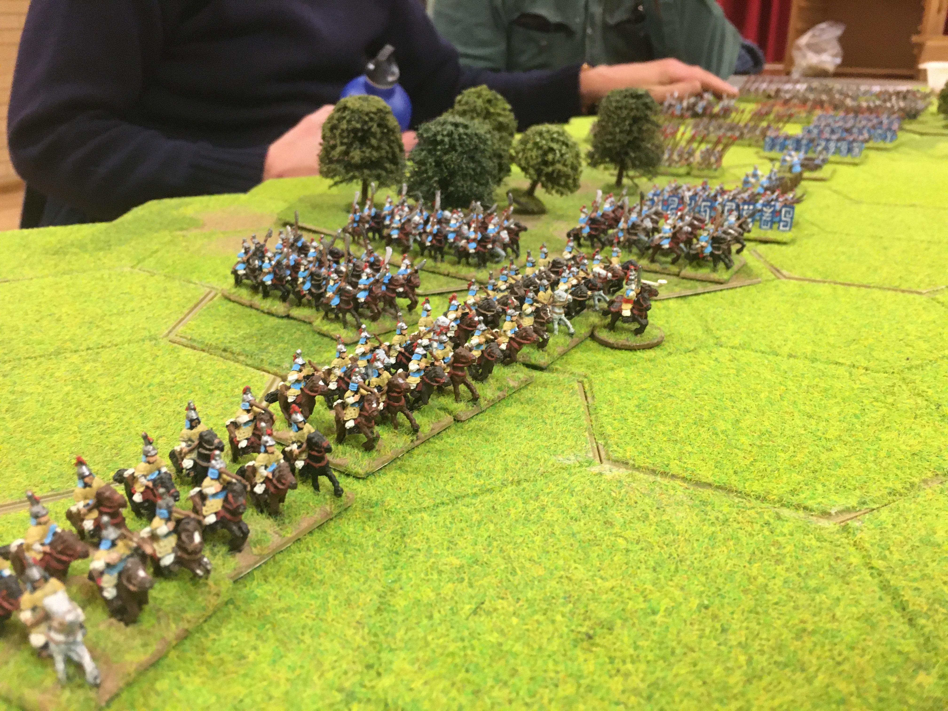 At least James was still holding Chris back on the other wing, until that is, the Chinese breakthrough in the centre left him exposed as well ! They were all waiting for ‘the cavalry’ to arrive to save them! Unfortunately the useless Korean cavalry commander (me!) had been played like a violin by Tony, who had played an excellent psychological game and effectively pinned my cavalry out of position.