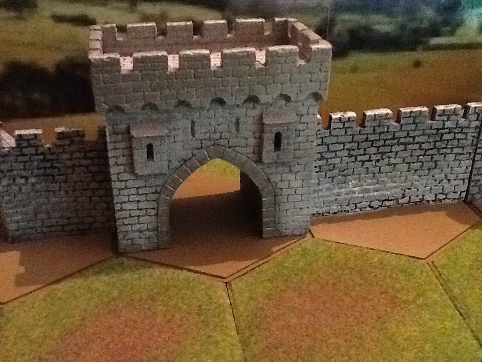 I have now finished painting and basing my castle pieces on brown hexes. I am considering adding some flock soon.