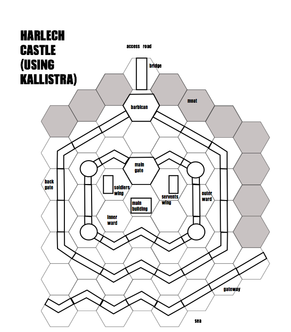 I have been busy drawing a map of Harlech castle for the siege of Harlech during the Wars of the Roses (1468) (using Kallistra). The castle was held by the Lancastrians for 7 years before it fell to the Yorkists. A siege memorialised in the song of Harlech.
