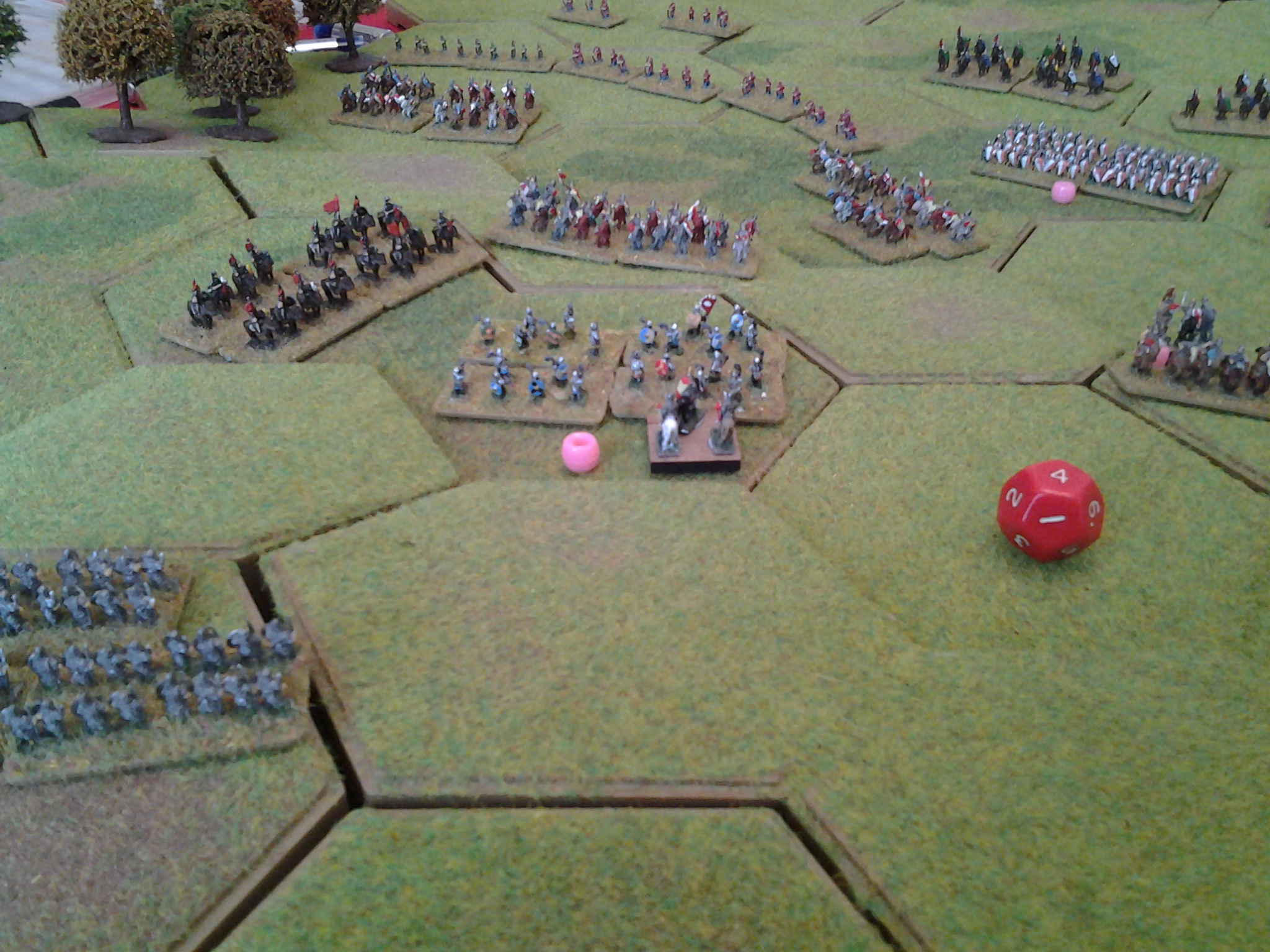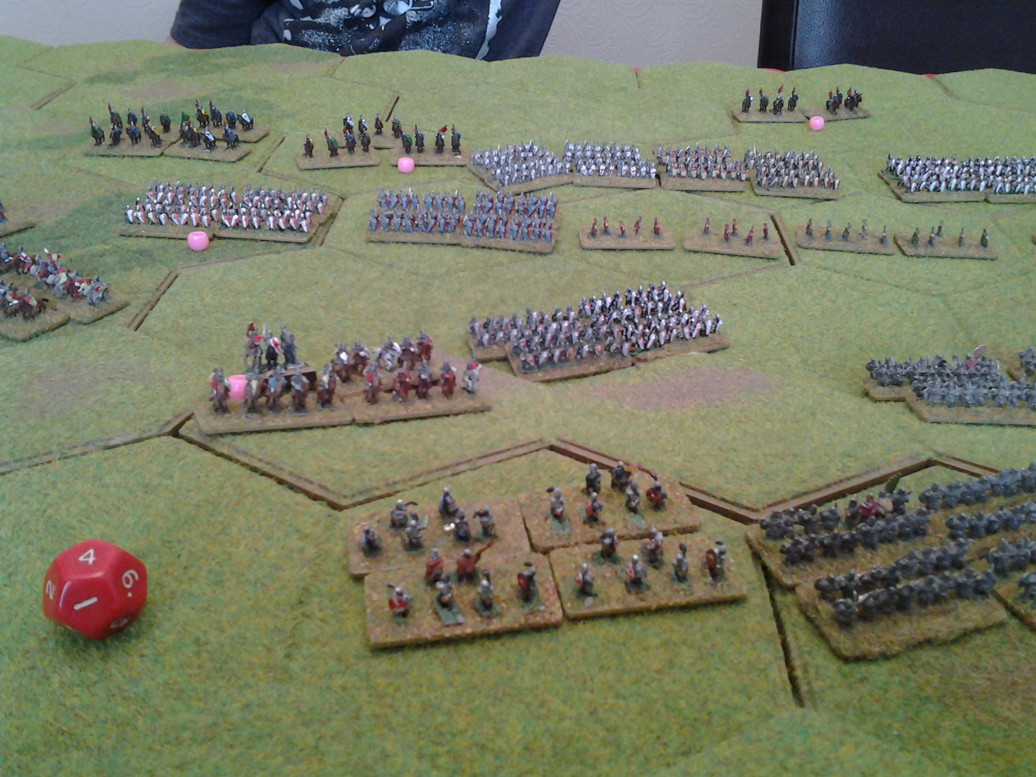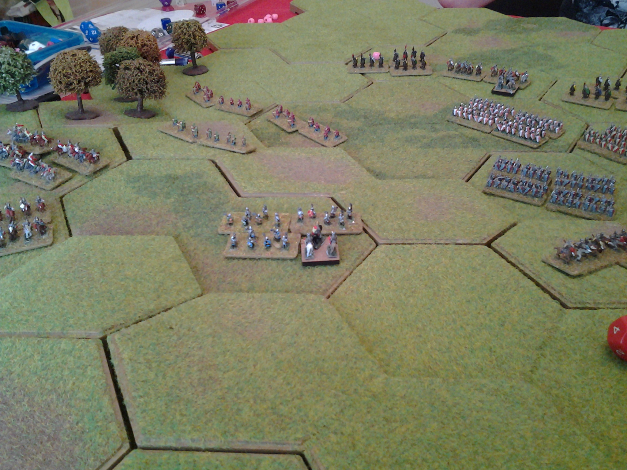 Shooting disrupts and reduces the Saxon left, and during the Saxon turn drives off the Saxon left flank while the right grinds on