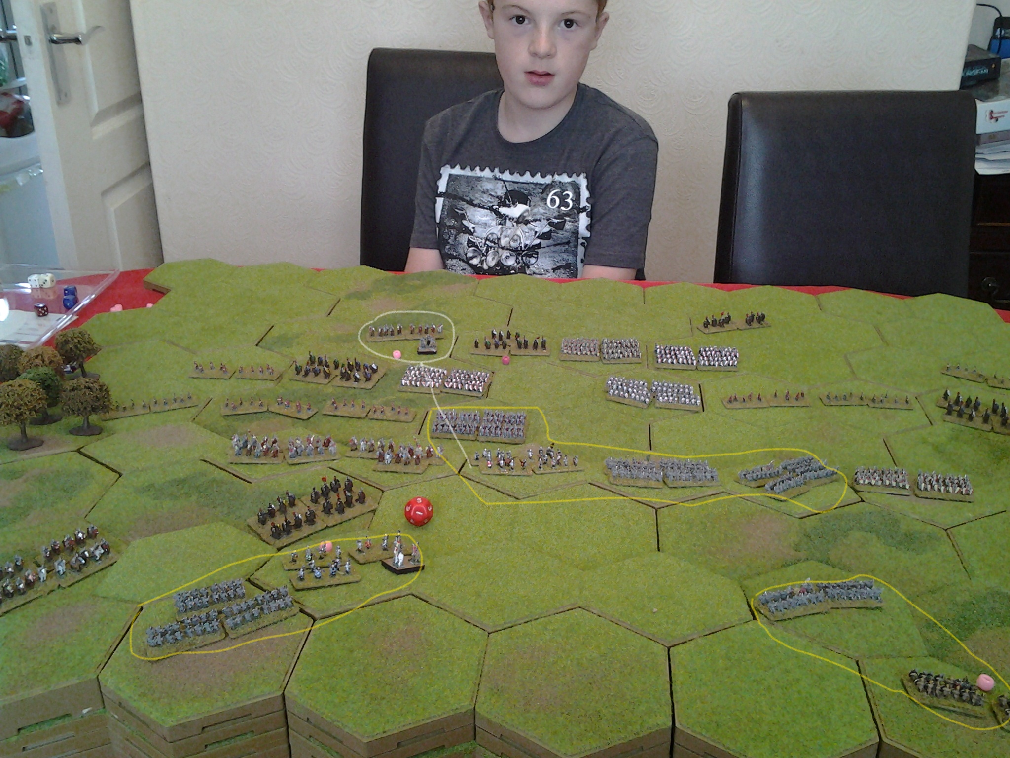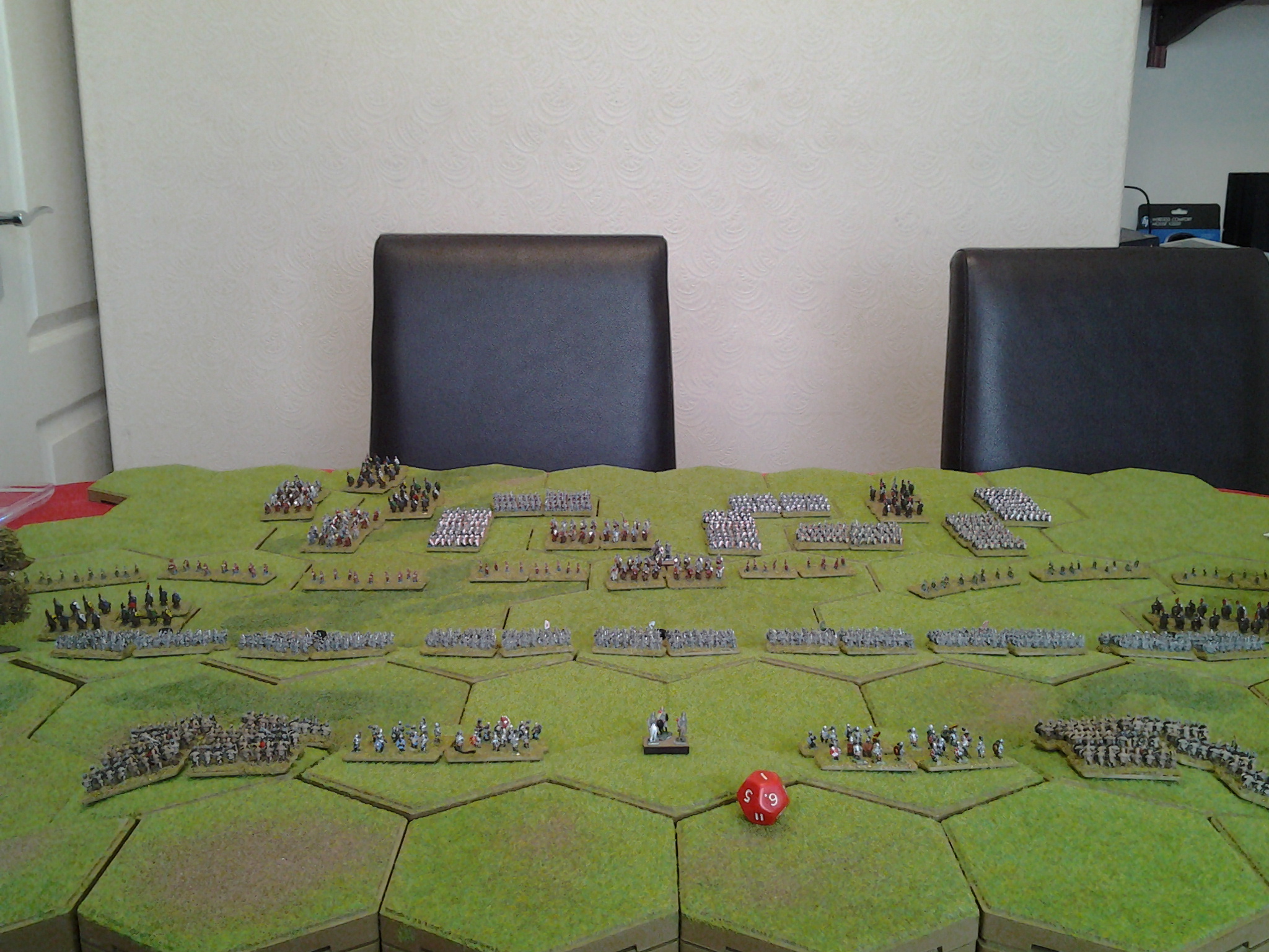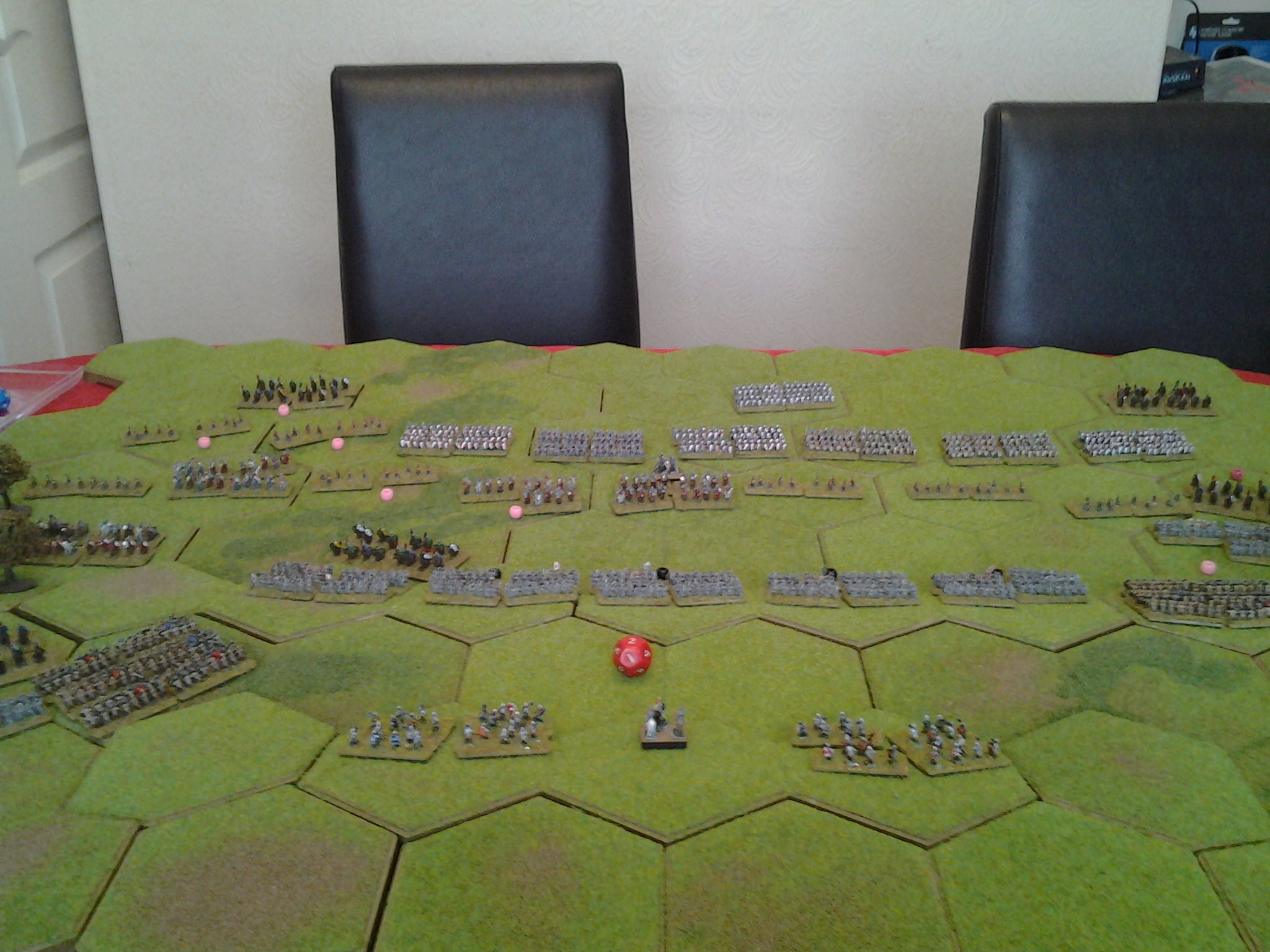 Shooting disrupts and reduces the Saxon left, and during the Saxon turn drives off the Saxon left flank while the right grinds on