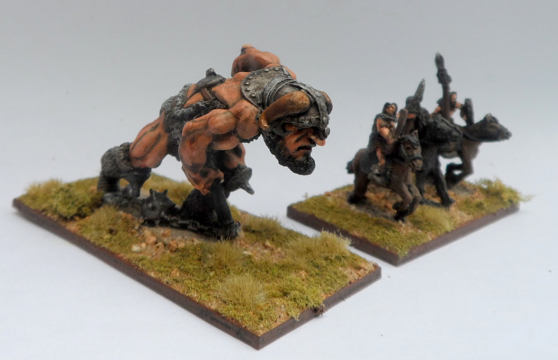 Here are the Giants Based and finished with some Dunlending (barabarian) archers and Cavalry for a size comparison....I like my Giants BIG!