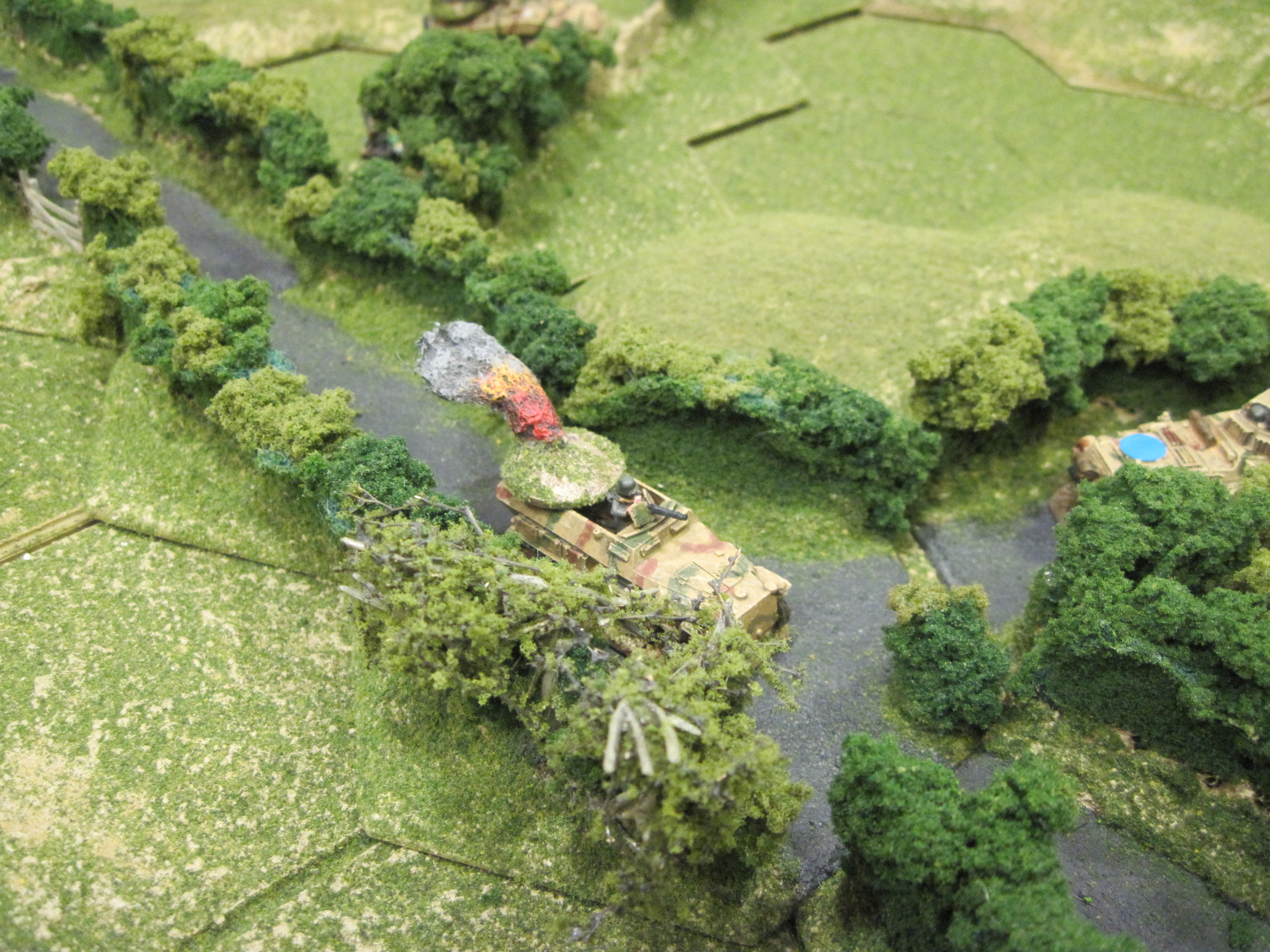 And so, it came to pass, that by the end of the game my visually challenged (blind!) Germans had lost 3 SDKFZs and 2 infantry sections, but in return, had successfully targeted and destroyed an empty British vehicle! Huzzzah!