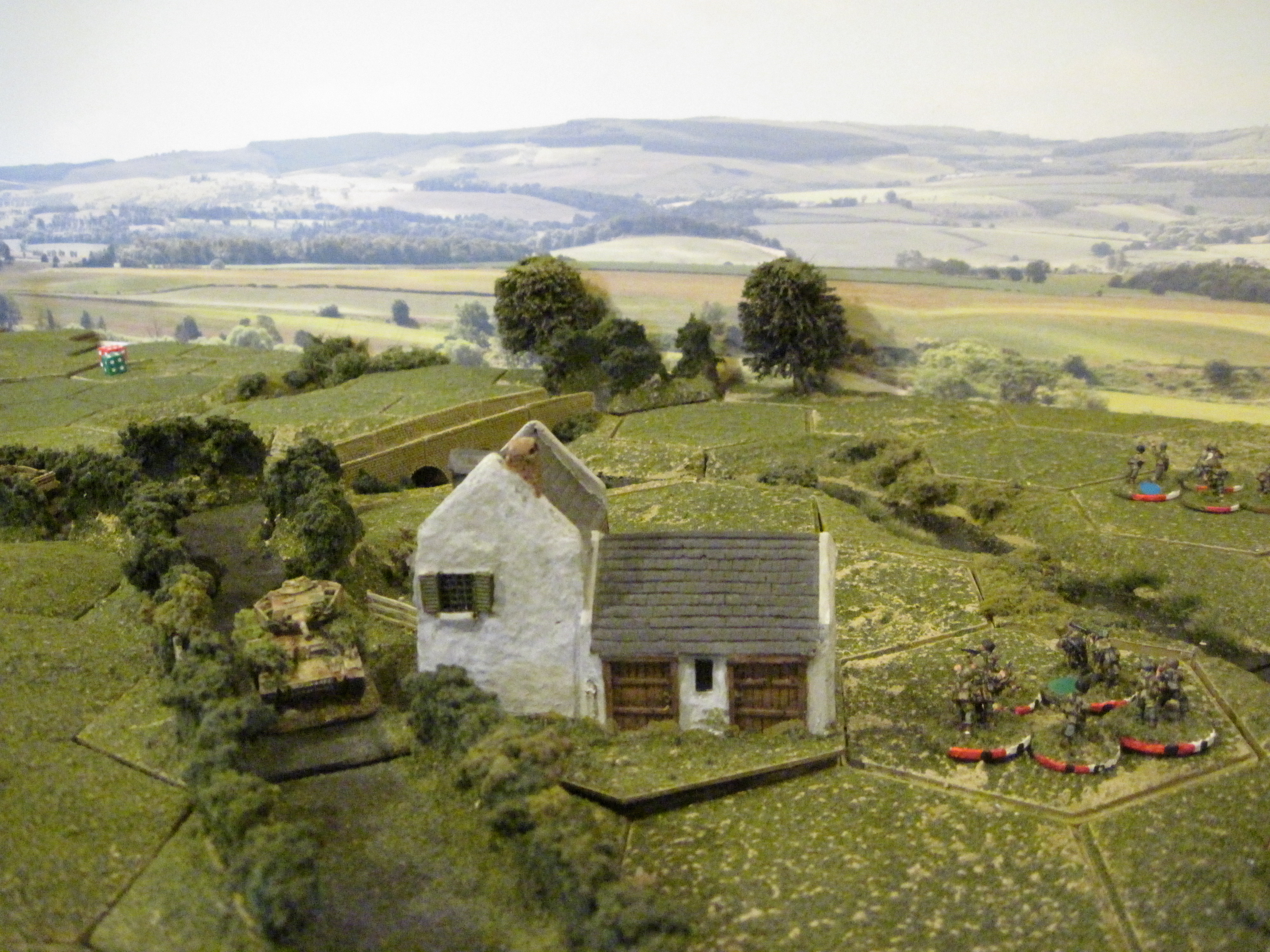 Chris awaited the arrival of the British tanks with his German defenders waiting in ‘ambush’, Pak 40 and an immobilised Stug IV ready to pop any British tanks approaching the second, larger village astride the escape road.