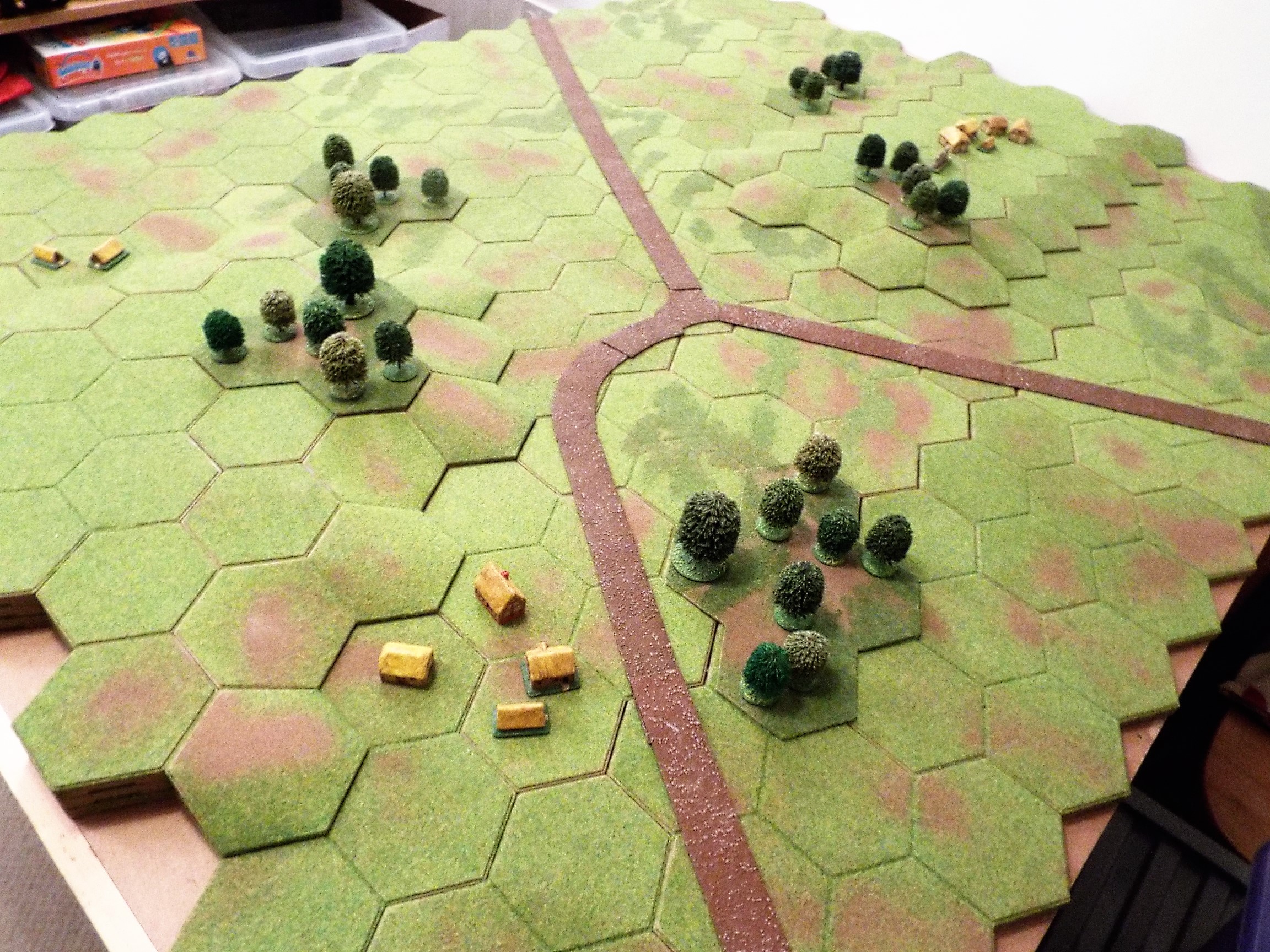 Scattered woodland and settlements dot the table