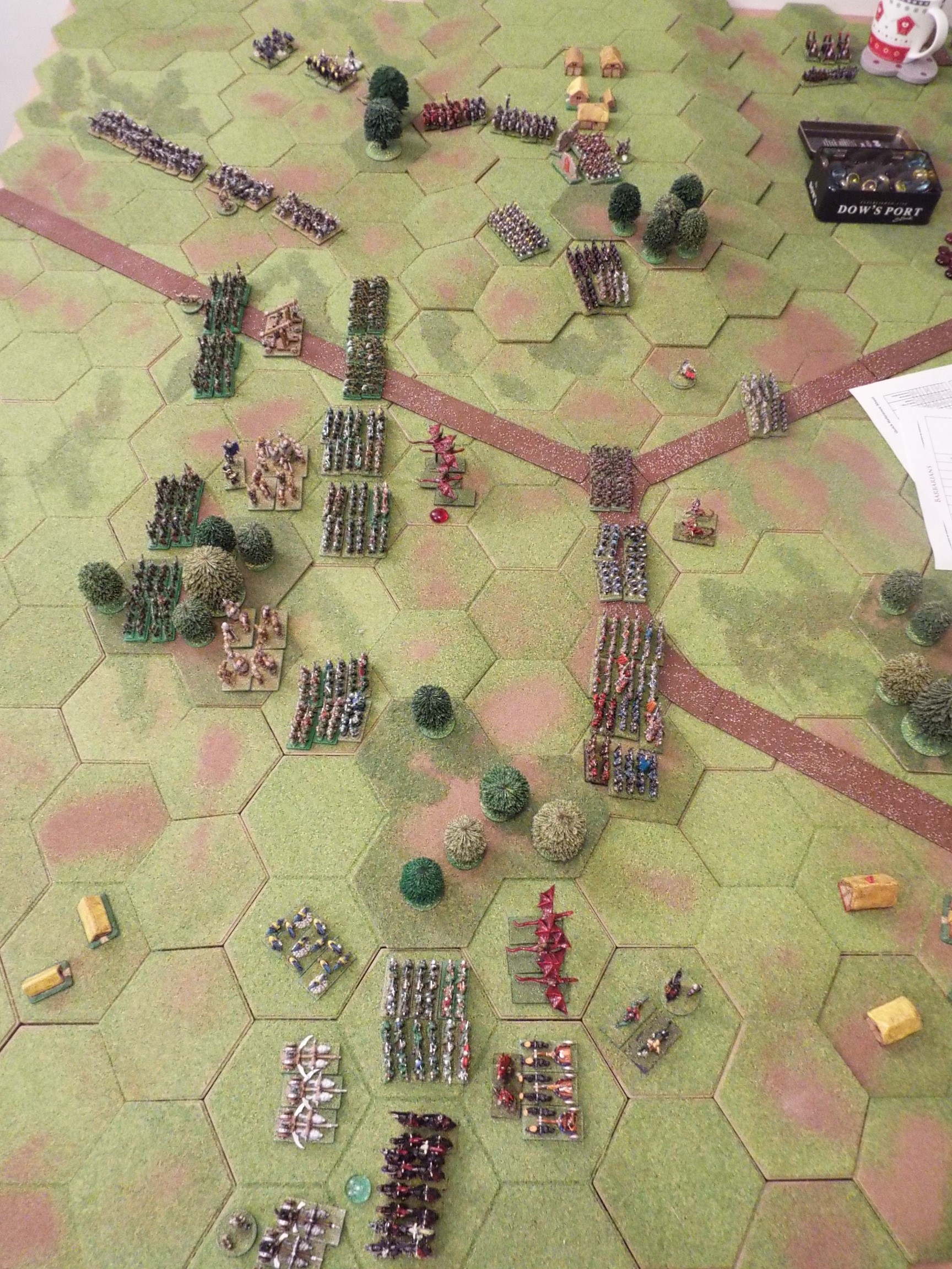 An aggressive advance from the barbarian forces which I had to deal with with precise force- had Mark pushed too far, too early or would his flanking plan work and he achieve a swift breakthrough.
