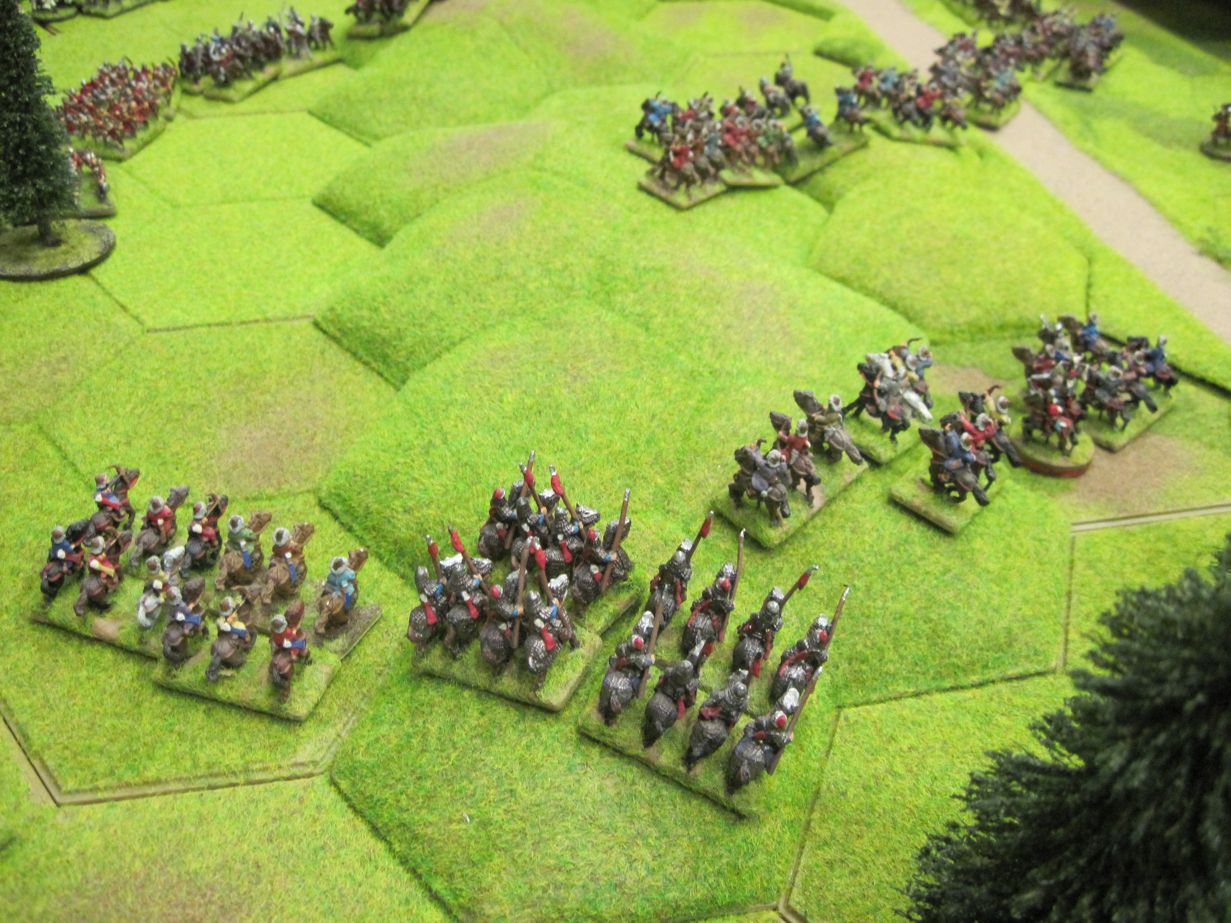 The English army deployed in a deep formation covering only halve the width of the table, but within easy reach of forest hexes and astride a road which could aid speed of movement a characteristic which the Mongol army already possessed in abundance.