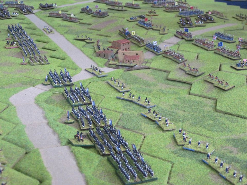 French managed to hold the initial British surprise attack by the 3rd division on the French left for most of the game. Also managed to force themselves into the british lines before being repulsed just as their left flank started to give, one big cavalry attack was going in on their right (nearly all cavalry on both sides involved) when time had to be called. Think between 10am and 3pm we were averaging 4 turns per hours would have been more if there had been another umpire.