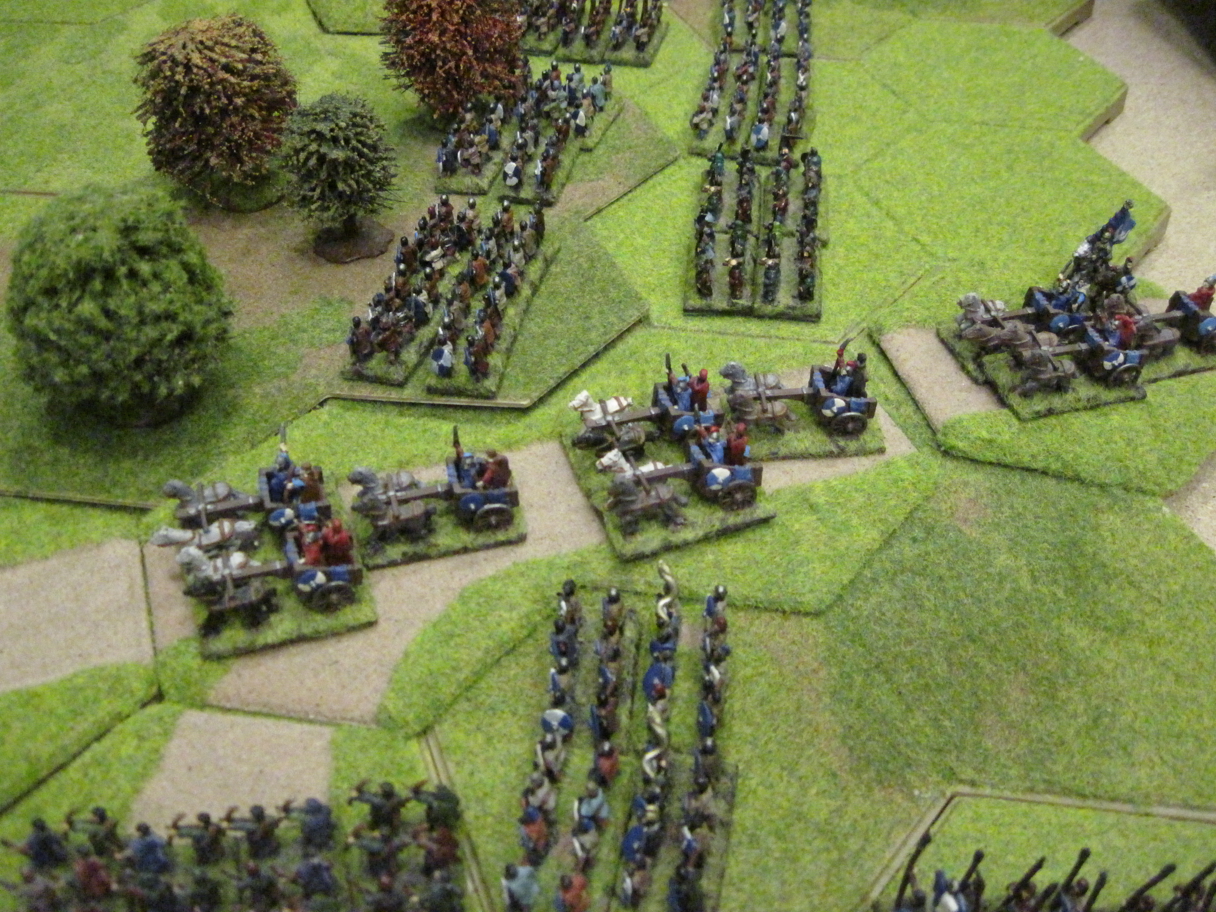 The teams swapped around so that Tony, Dave and Tim had the Normans and Mark, Chris and me had the Romano Brits. The first few moves of this second game saw both sides adopt a slower and more cautious approach. Tony was once more in the role of Norman cavalry commander and after his exploits in the first game ‘we’ Brits were watching his every move and Chris kept his 3 chariot units safe behind a line of warriors.