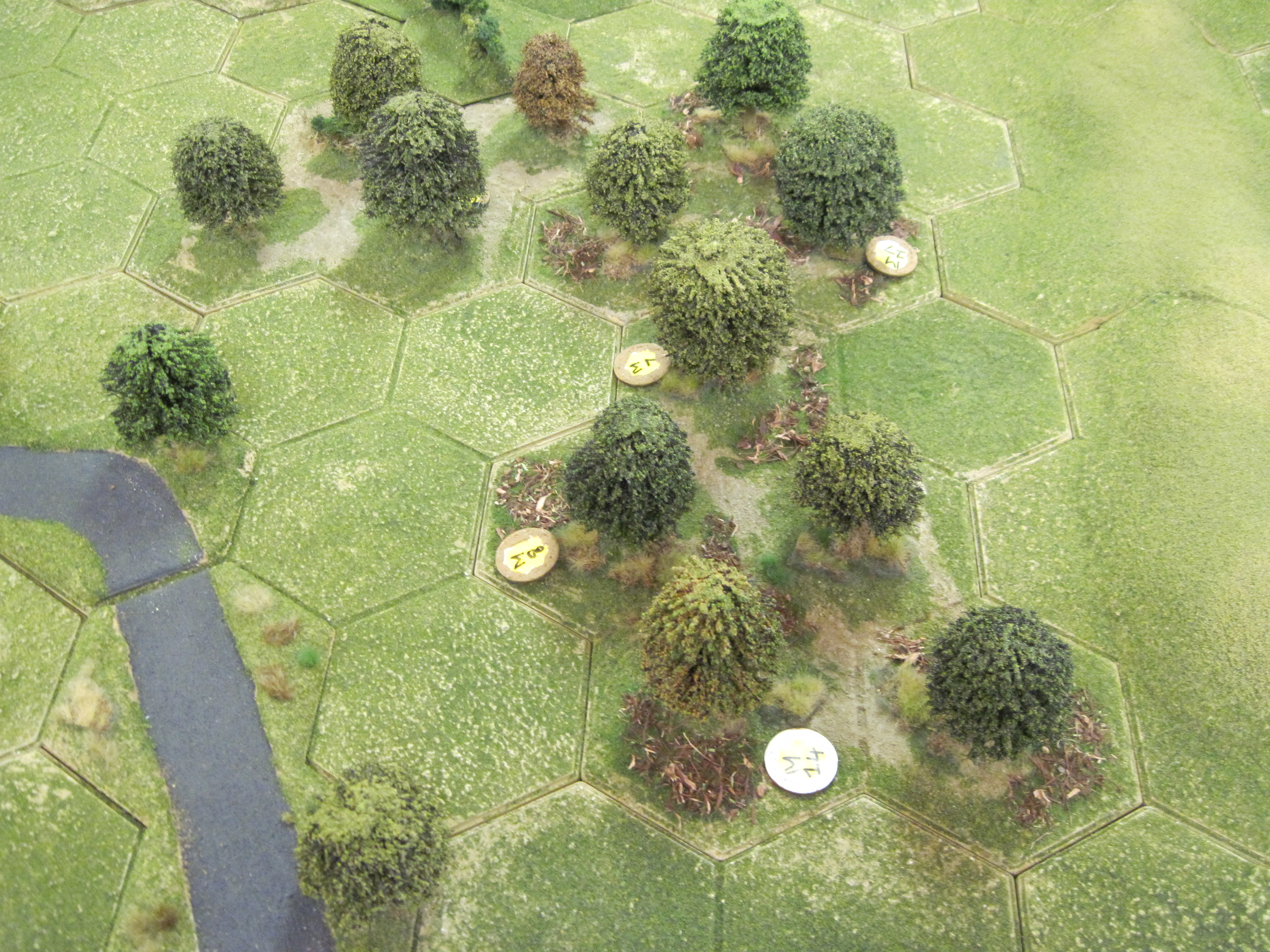 The British markers soon stopped the German advance as units rolled dice to try and identify the British units. The fear of British anti-tank guns played into the hands of the defenders as they were able to bring down mortar fire on the advanced German units, but this only succeeded in causing minimal damage and suppression.
