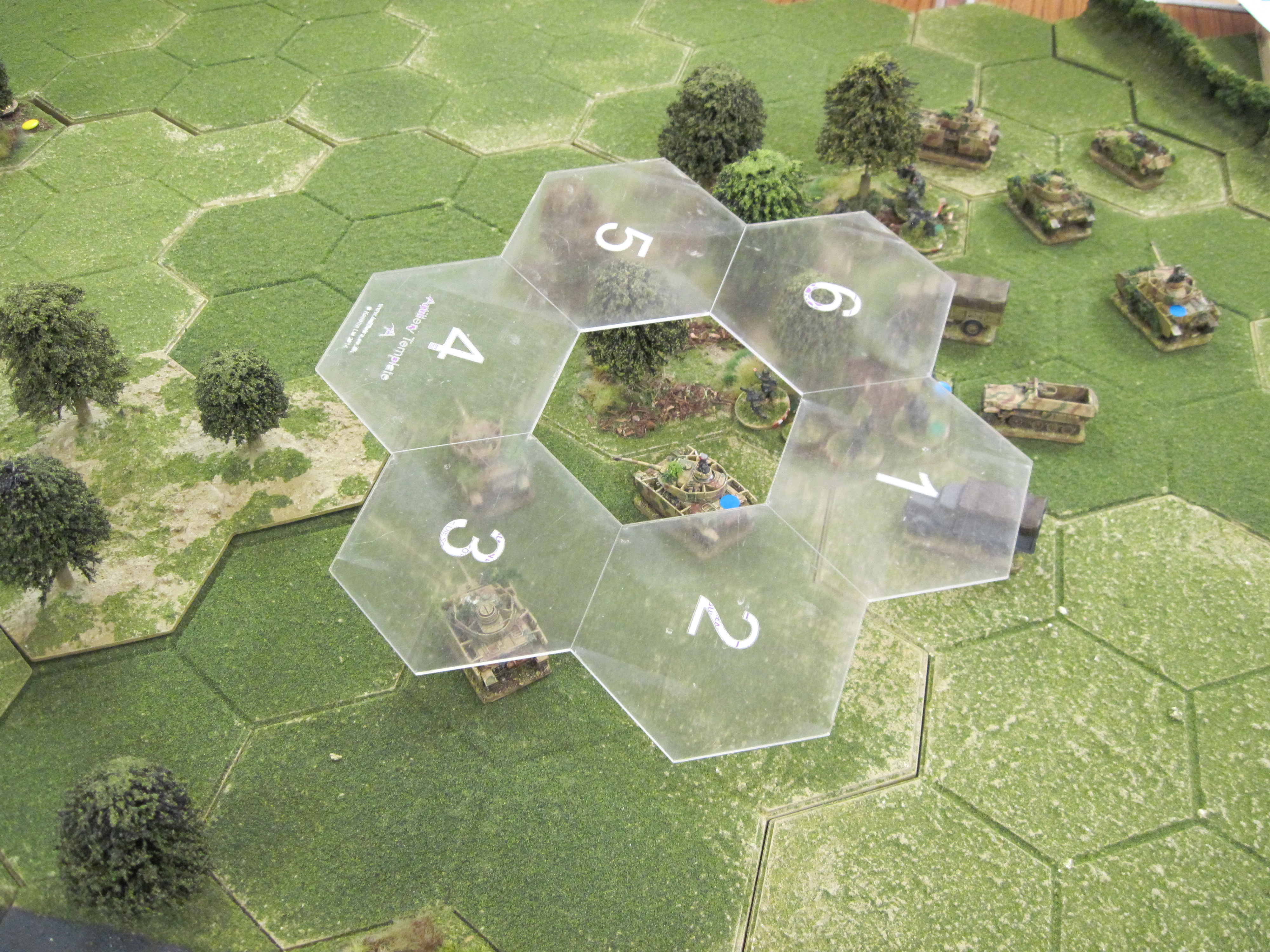 This was a large club game using the hex-based adaptation of the Command Decision WWII rule set with all terrain and miniatures provided by Dave Mack from his extensive collection.