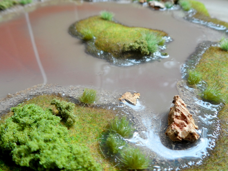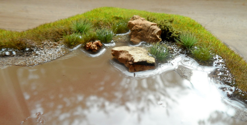 the moulded lakes are perfect for using the woodland scenic resin, good luck