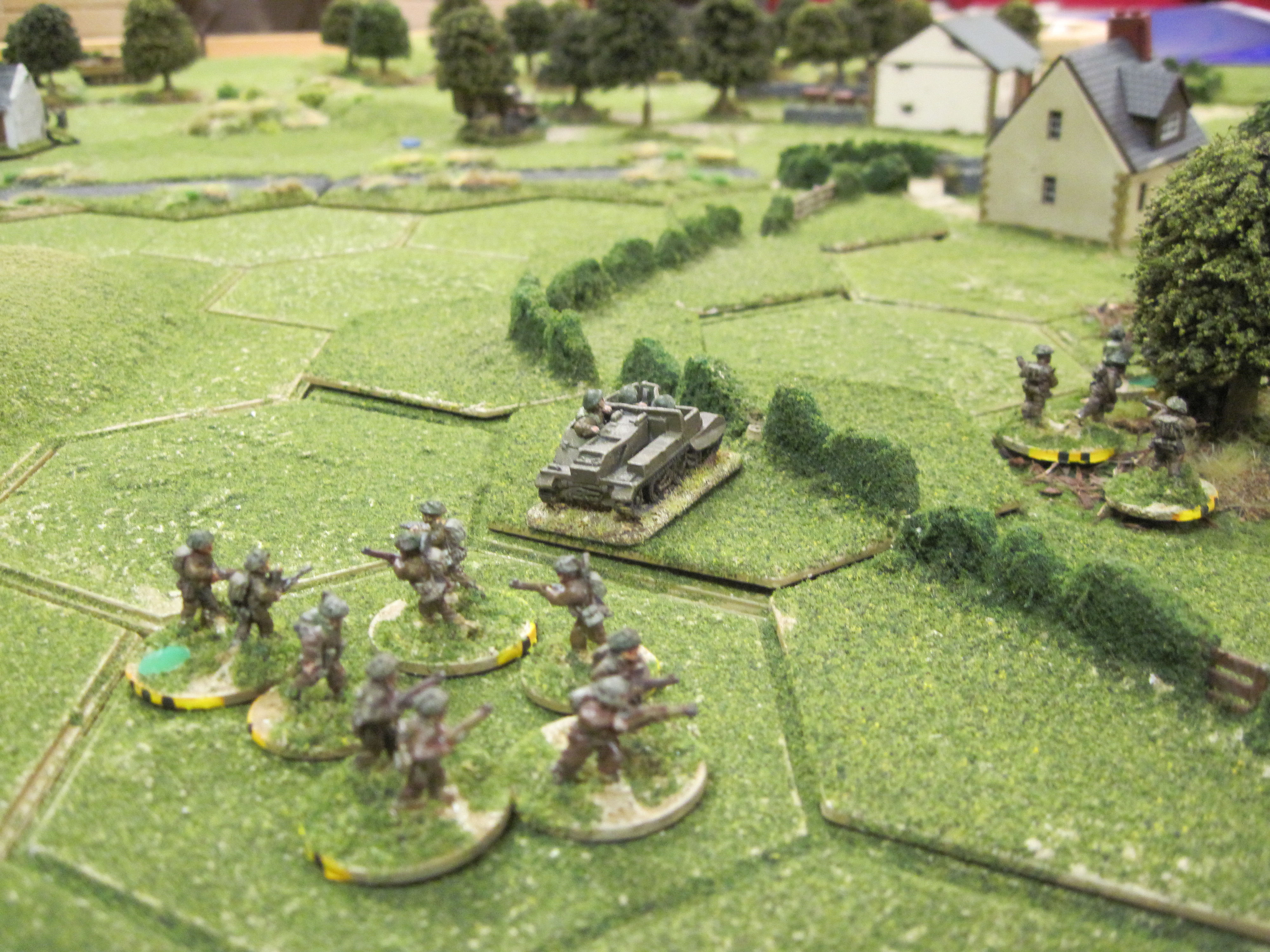 The Germans had a PAK 40 anti-tank gun and 4 infantry sections, the positions of which were identified on a hex-grid map so that they could be ‘discovered’ by the British units as they attempted to cut the German escape routes.