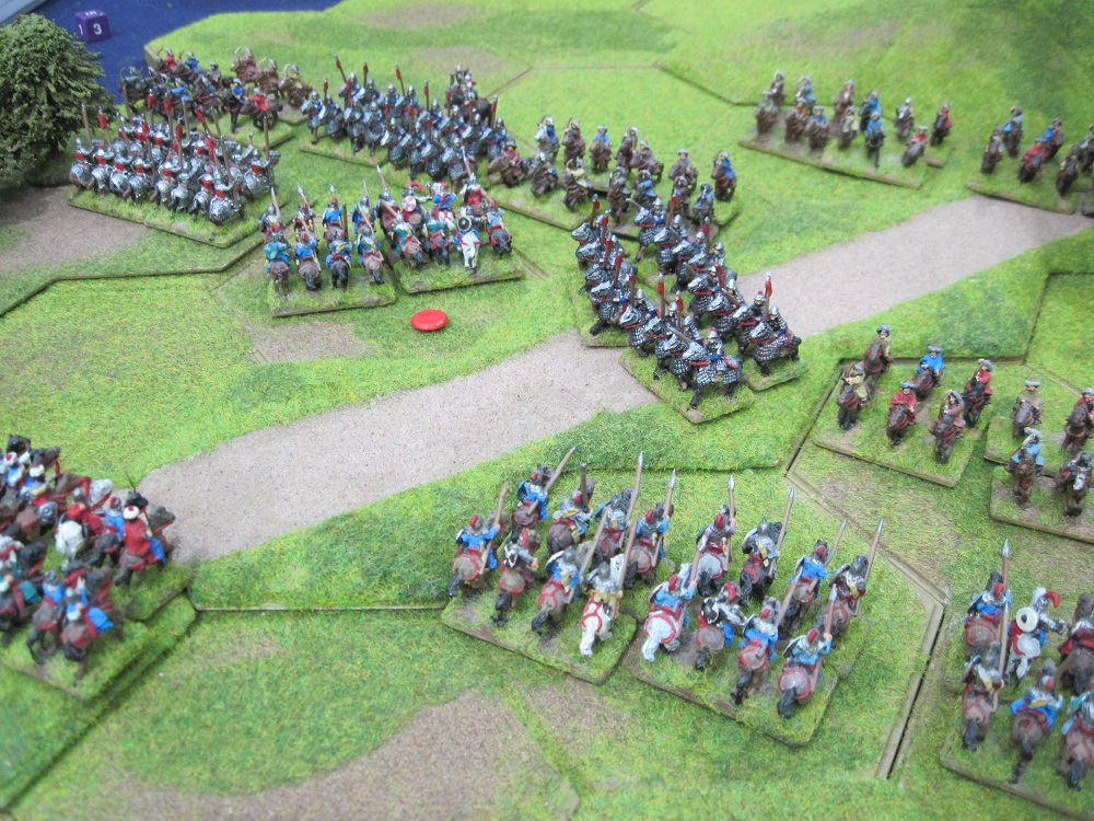 After analysing the previous encounter between these two cavalry armies I re-jigged the battlefield by removing impassable hills small lakes and forests to create a very open battlefield, with gentle slopes and wide plateaus over which both armies could move quickly.