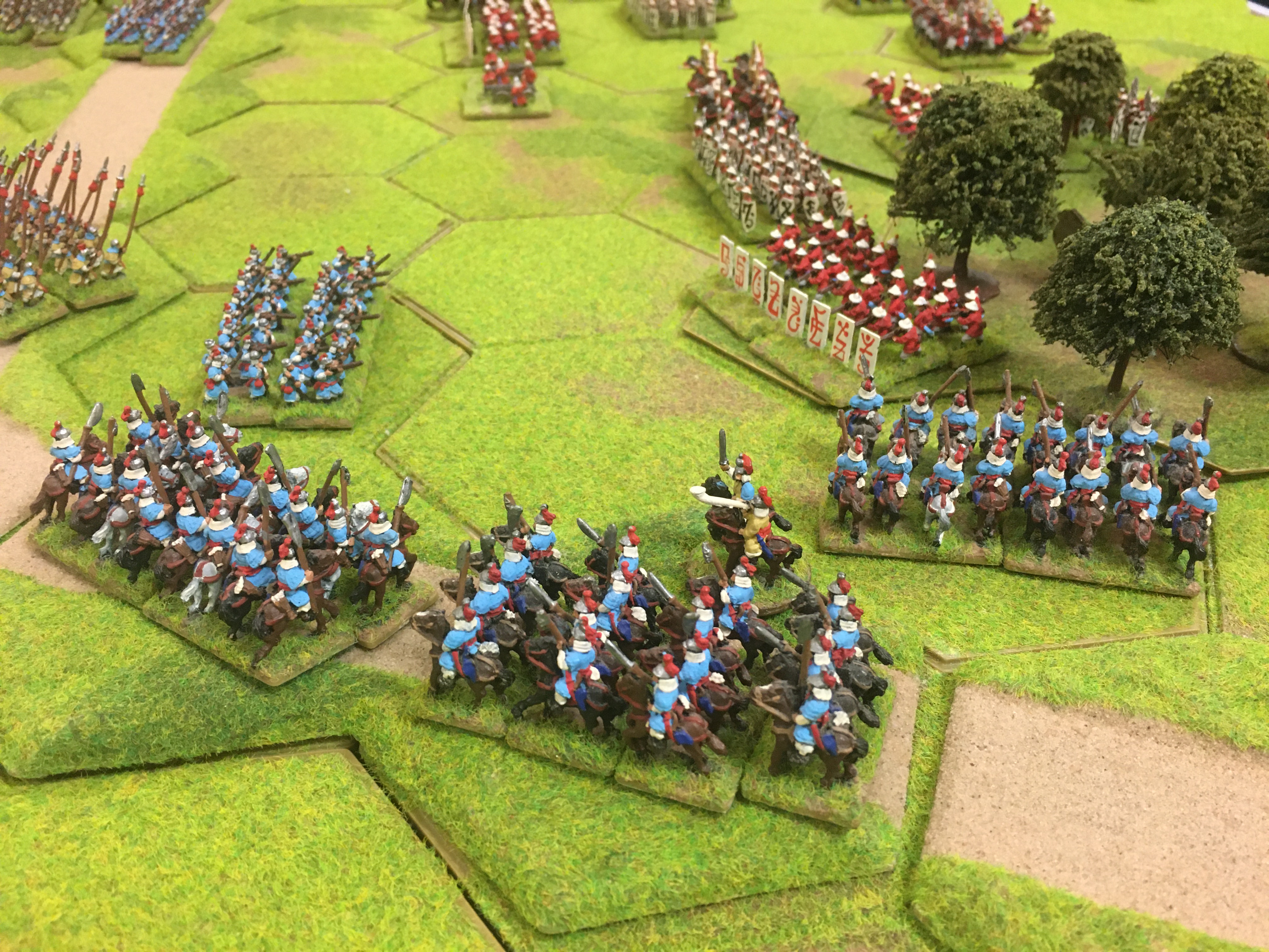 With the Chinese cavalry retreating behind the cover of this aforementioned woodland I was able to occupy the area up to the Chinese table edge with my Korean light cavalry. The gap between the wood and the Chinese table edge was only 2 hexes wide but I planned to send my light cavalry through this gap and attack the Chinese rear was soon as the opportunity presented itself. Trying to disguise this intention was the tricky bit!
