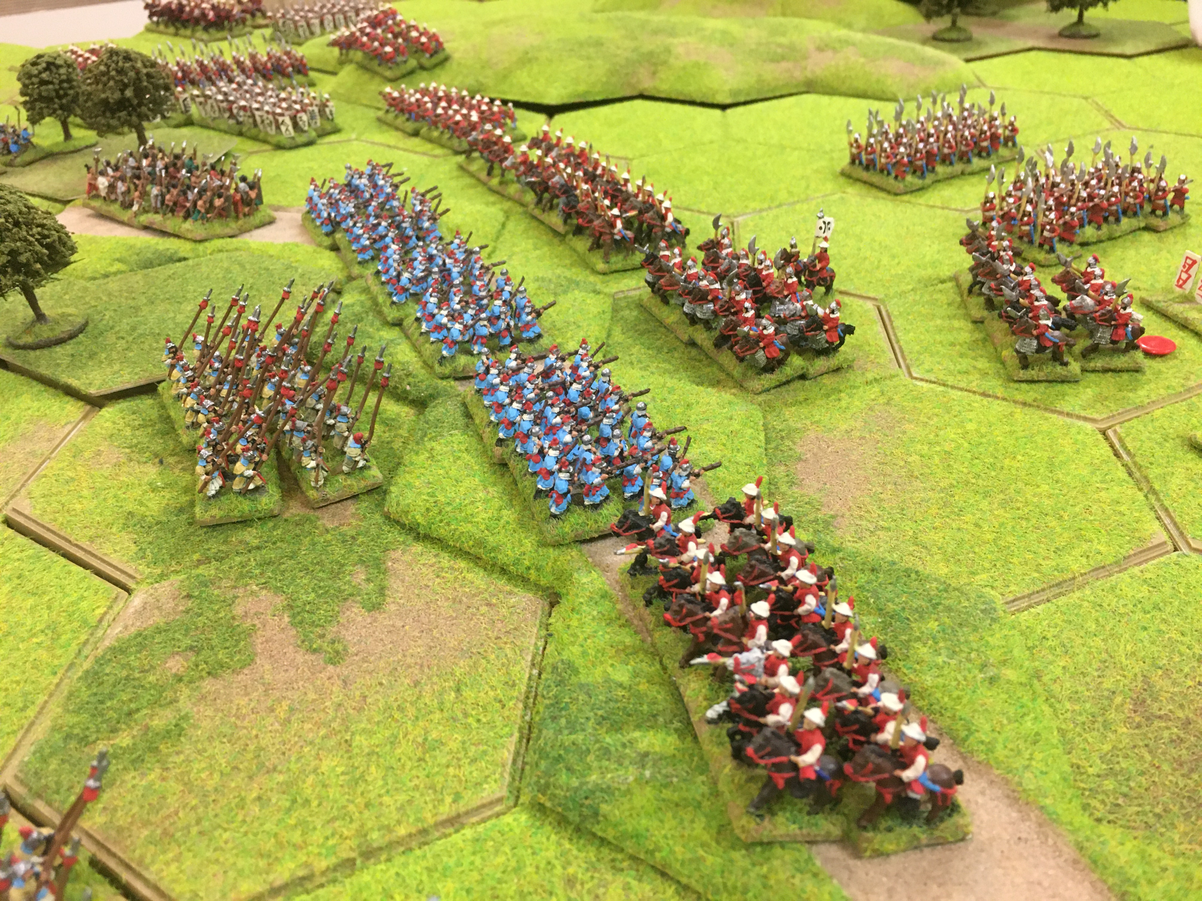 At least James was still holding Chris back on the other wing, until that is, the Chinese breakthrough in the centre left him exposed as well ! They were all waiting for ‘the cavalry’ to arrive to save them! Unfortunately the useless Korean cavalry commander (me!) had been played like a violin by Tony, who had played an excellent psychological game and effectively pinned my cavalry out of position.