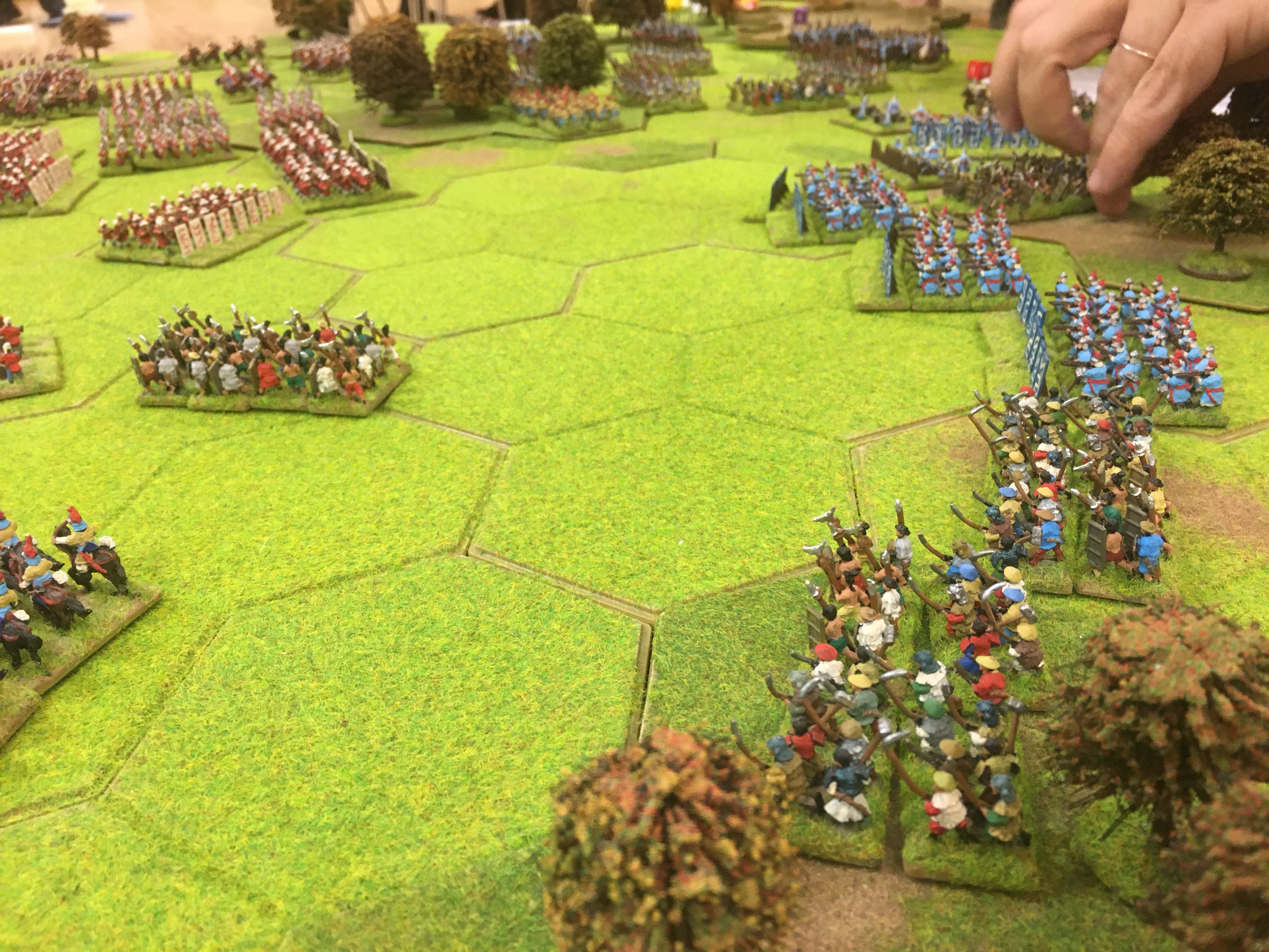 Tim and Tony played to the Korean strengths rather well and fooled me into believing that their cavalry were destined to switch flanks. As a result I failed to commit enough to either flank and dithered too long with my best troops in the centre. Eventually, my Chinese units were whittled down by superior Korean shooting from both infantry and mounted units.