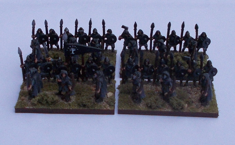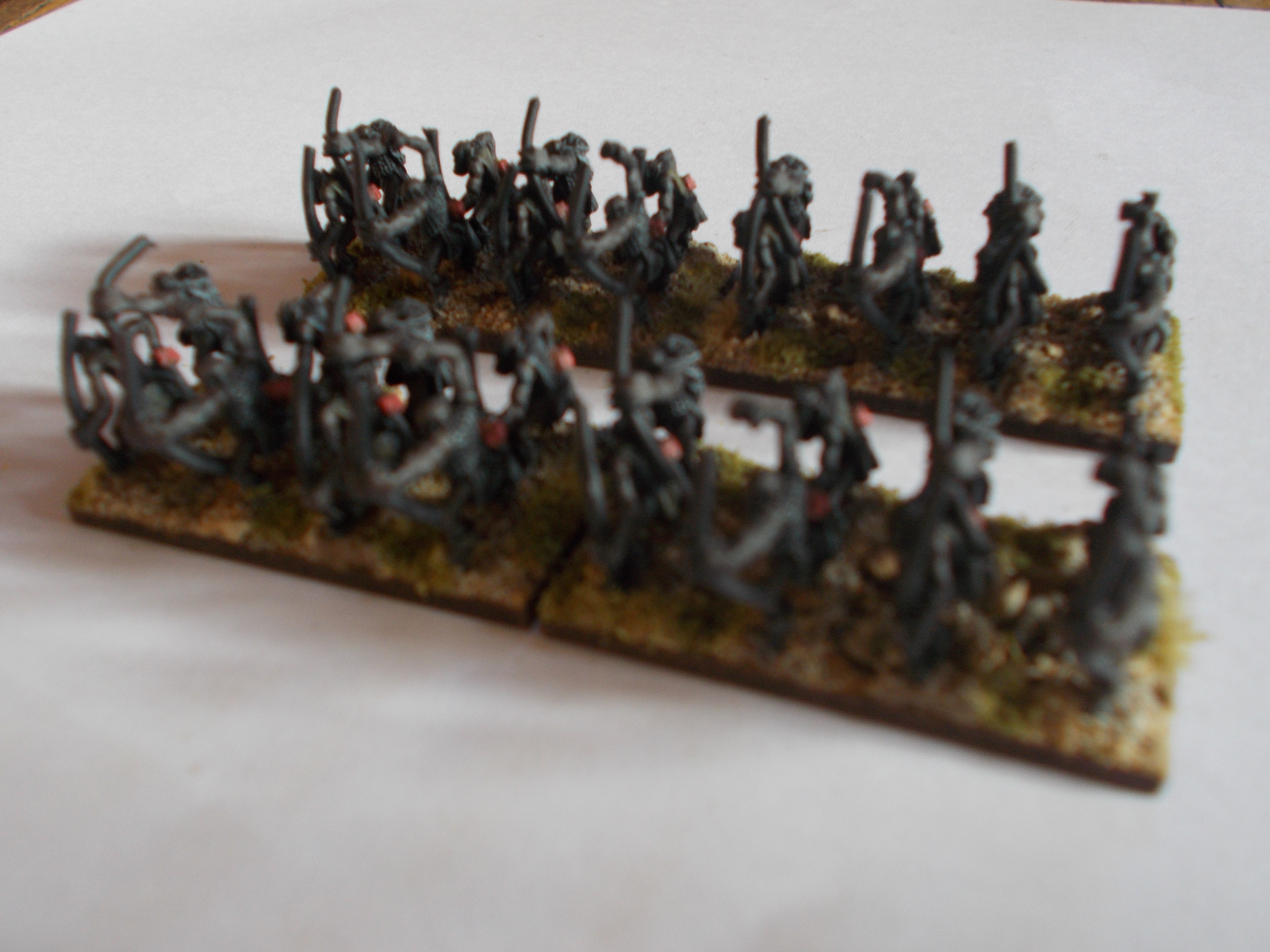here's a few pics of units I finished before the weekend, Black Numenorean heavy Knights cavalry and foot, The mouth of Saurons Banner Bearer, and a unit of Heavy Easterling Cavalry.