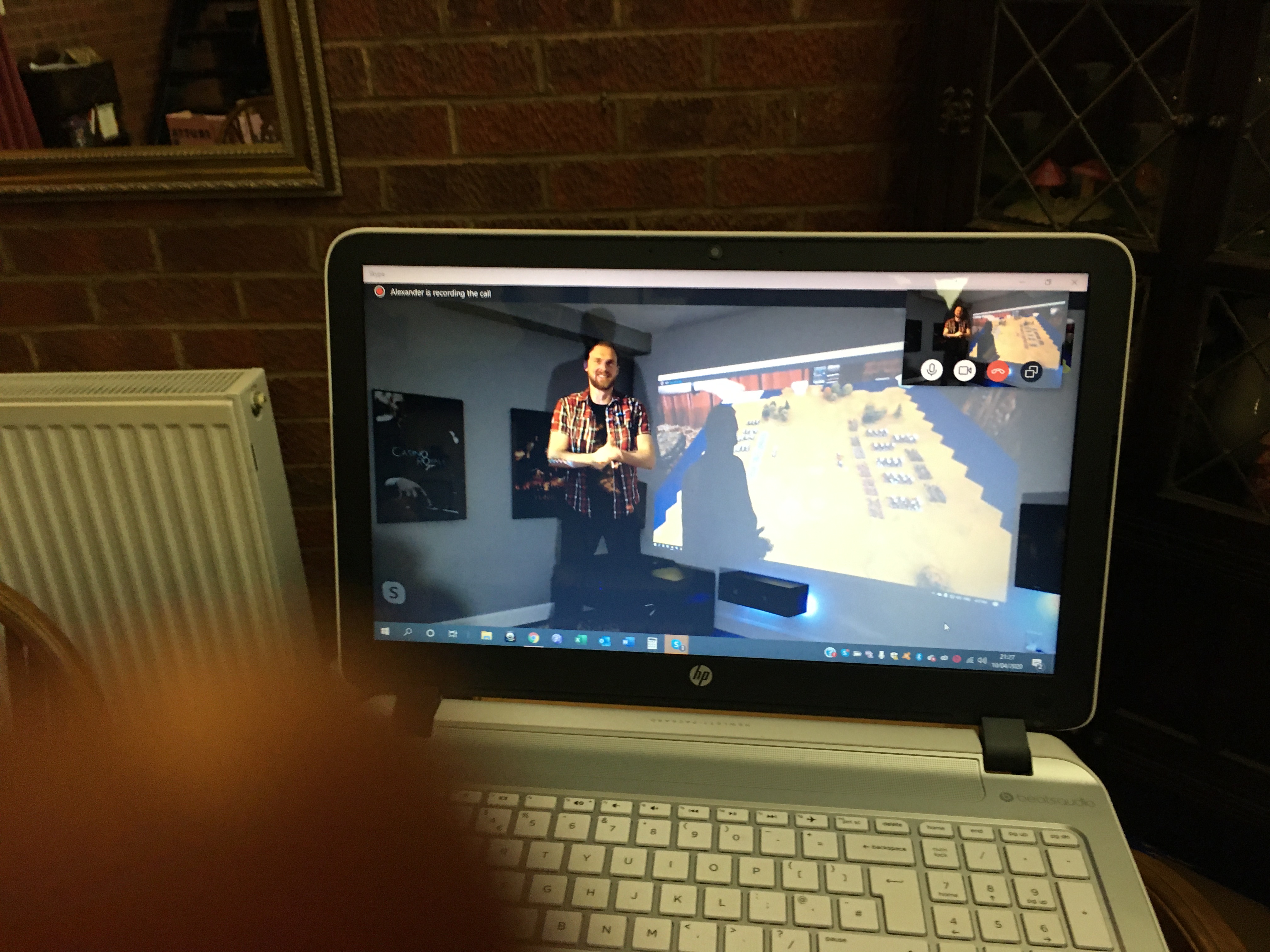 This was our first Skype game of Hordes and Heroes with the two players 3250 miles apart! Alex based in Ottawa Canada, and myself based in Warsop in Nottinghamshire. With the board and miniatures in the UK it was vital that the Canadian player had a clear view of the table and the exact locations of each and every unit on the table. In order to achieve this, Alex set up a projector TV which enabled him to stand in front of an 8ft by 5ft screen – the wonders of modern technology!