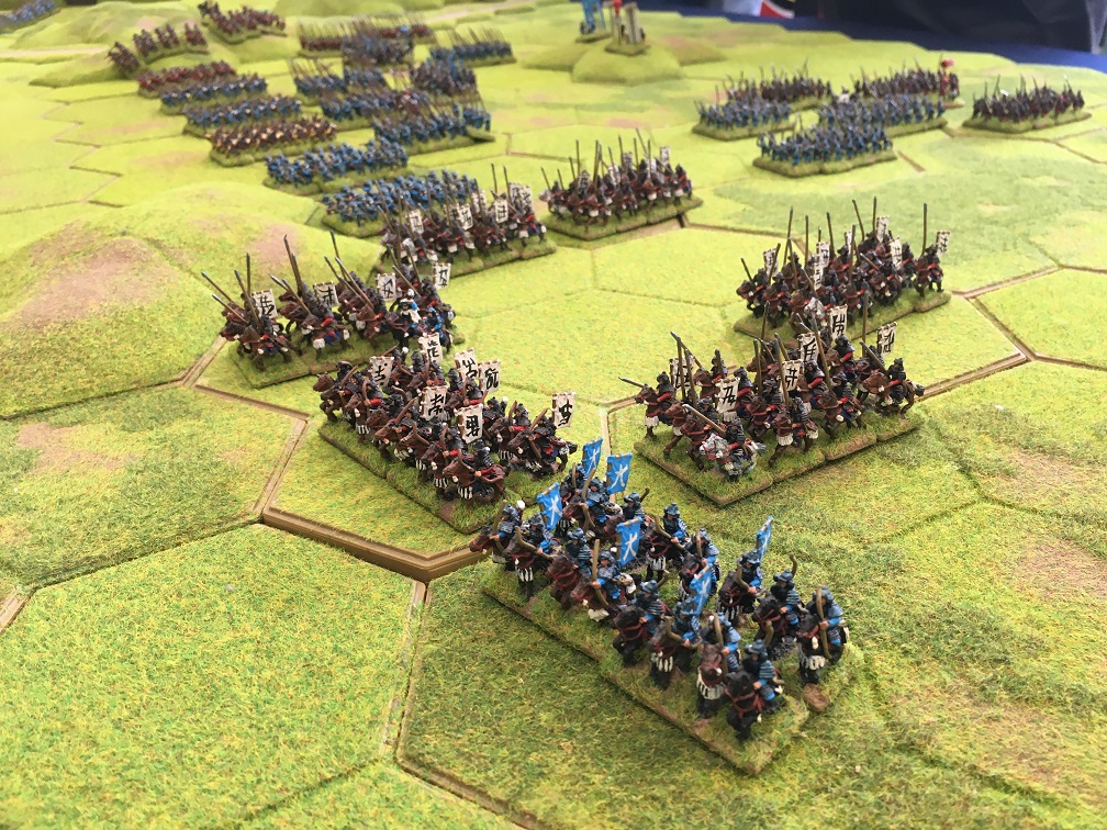 The Samurai army under the command of Dave Mac advanced towards Tim’s Korean cavalry which resulted in a cavalry on cavalry encounter. The Korean militia and spear units were held in reserve along with the Korean handgunners and militia holding the fort guarding the pass through which the Ming army was expected to arrive.