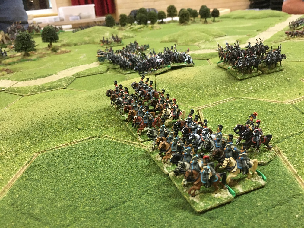 The French infantry square defending the village was soon overwhelmed and destroyed by the Russian cavalry, but by then Tony’s cavalry had arrived in sufficient numbers to push them back and in doing so protect our left flank and shore-up the defence of village.