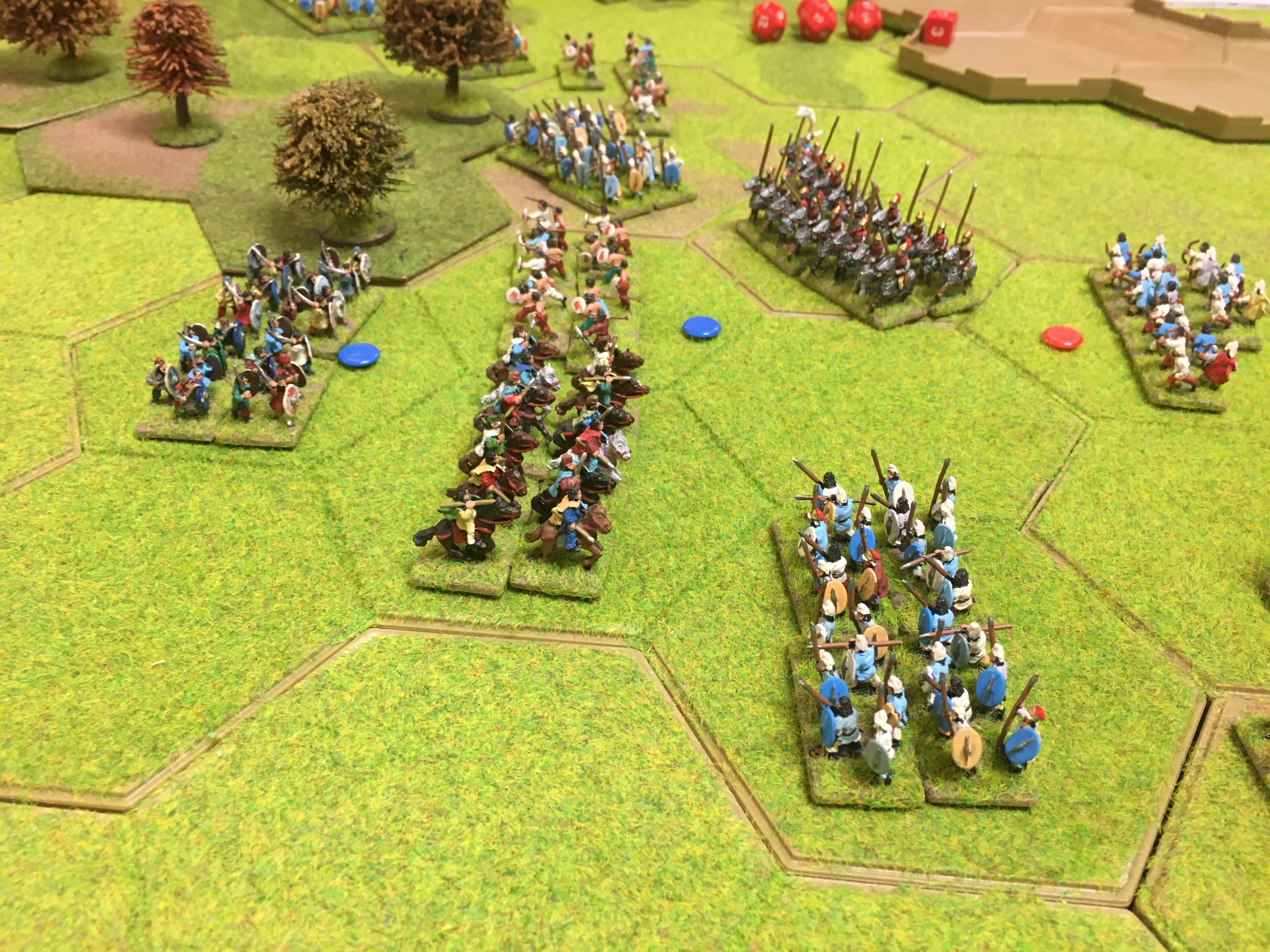 On my wing, after more than an hour of suffering at the hands of the Parthian light cavalry, with still more sacrifice the light cavalry were finally forced to retreat. The Dacian infantry unit armed with the 2 handed falx dealt a deadly blow to the attack of the Parthian infantry through the woodland. Both armies had by this point lost half their generals and command and control limitations were beginning to effect both armies; there was certainly a reluctance on our part to commit any generals into hand-to-hand combat.