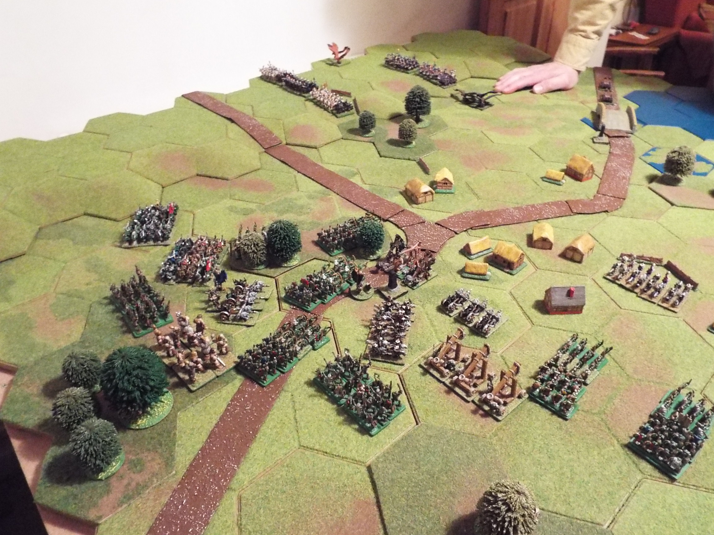 This encounter between the ravening orcs and stalwart elves took place on, what can only be described as, a "busy" battlefield. The village of Caerfen, named after a long gone Elven fort, sits on a busy trade thoroughfare, a well- travelled route for wealthy merchants. It was these tempting spoils which first drew the attention of roving orc war parties, however, their numbers were never great enough to pose a truly serious threat to the well protected traders or the village itself.... until now!