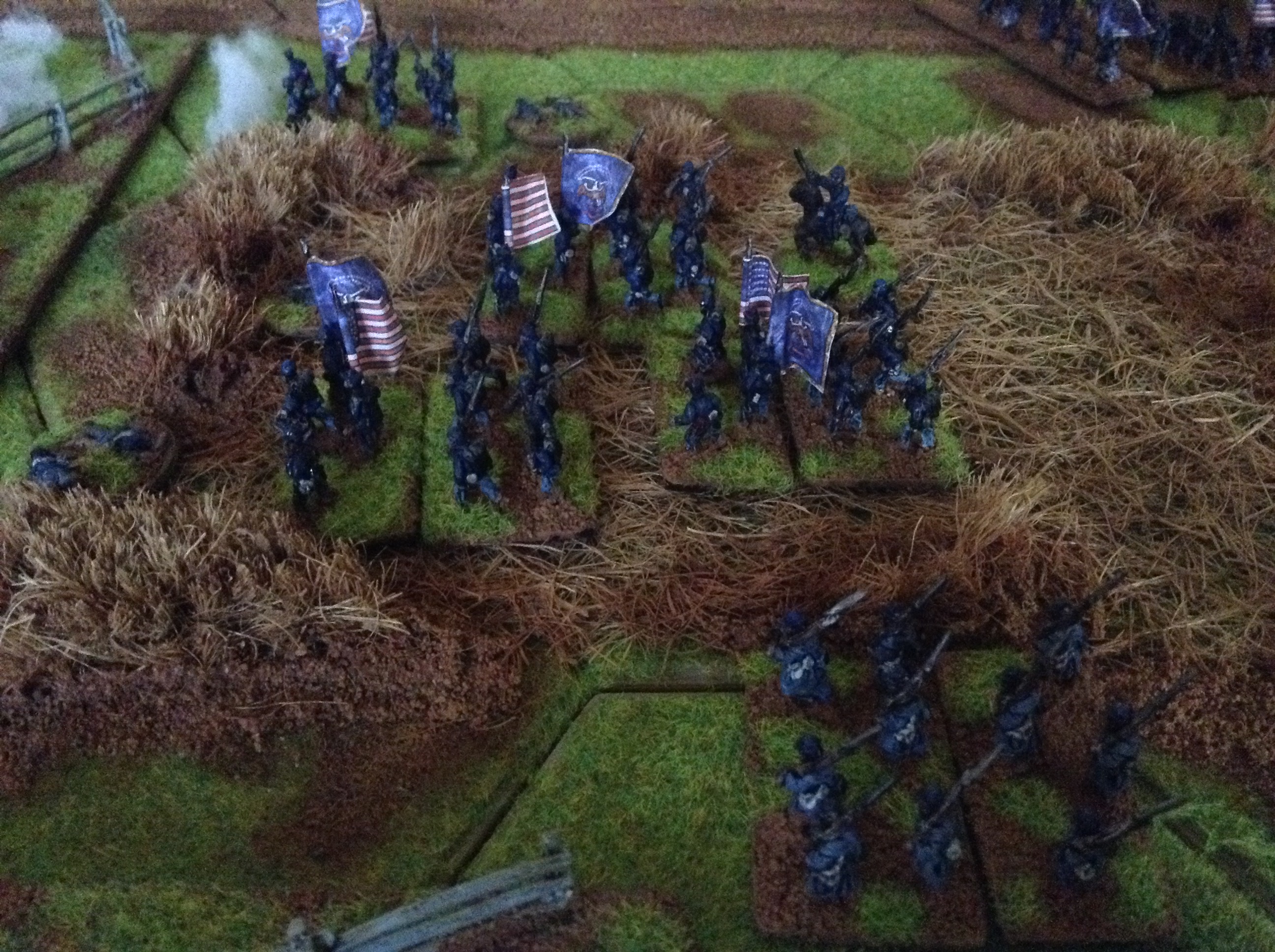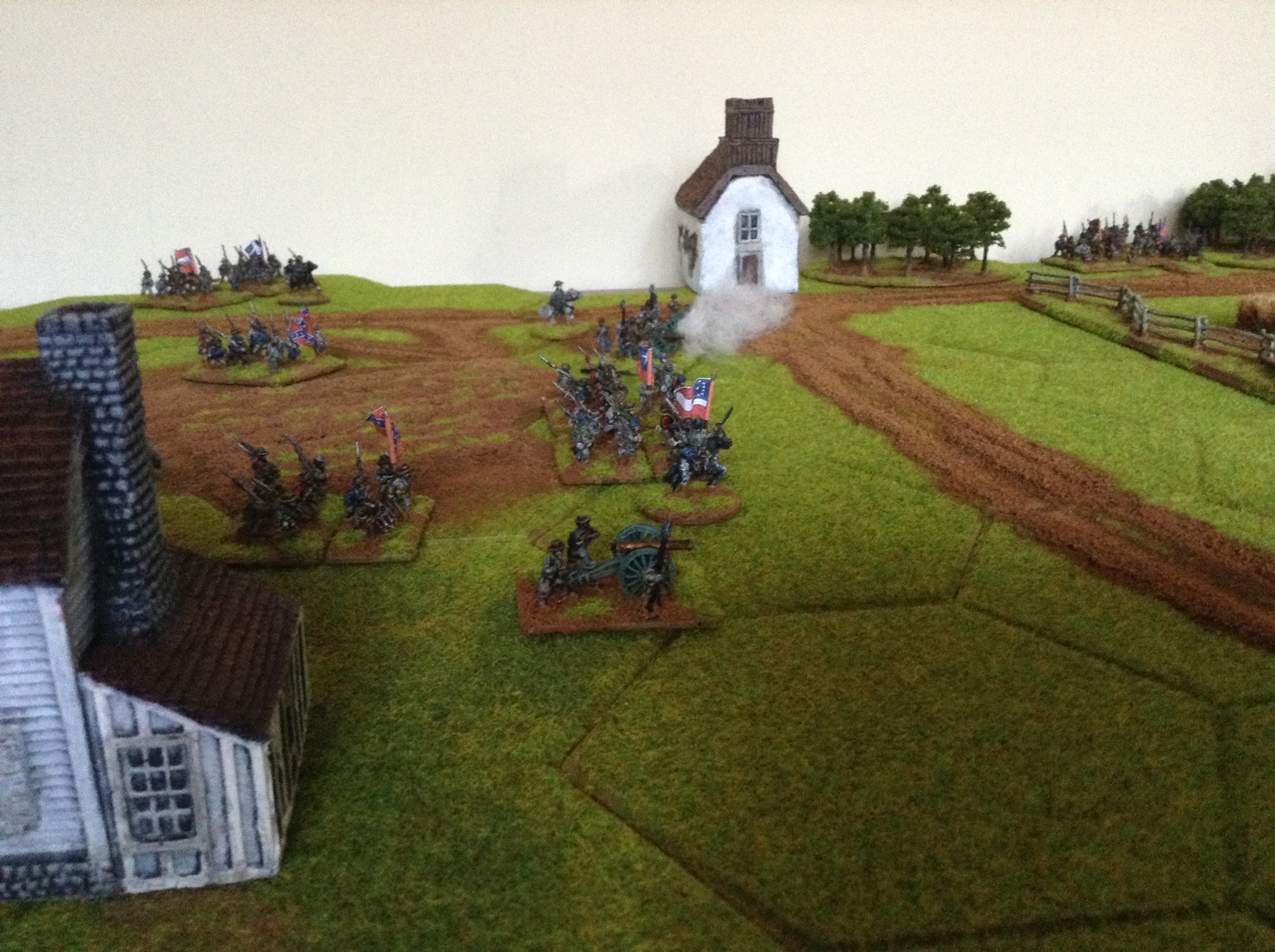 Hood's crack troops, Texans, charge into action and push the beleagered Union units back, being A class troops with some high dice rolls!