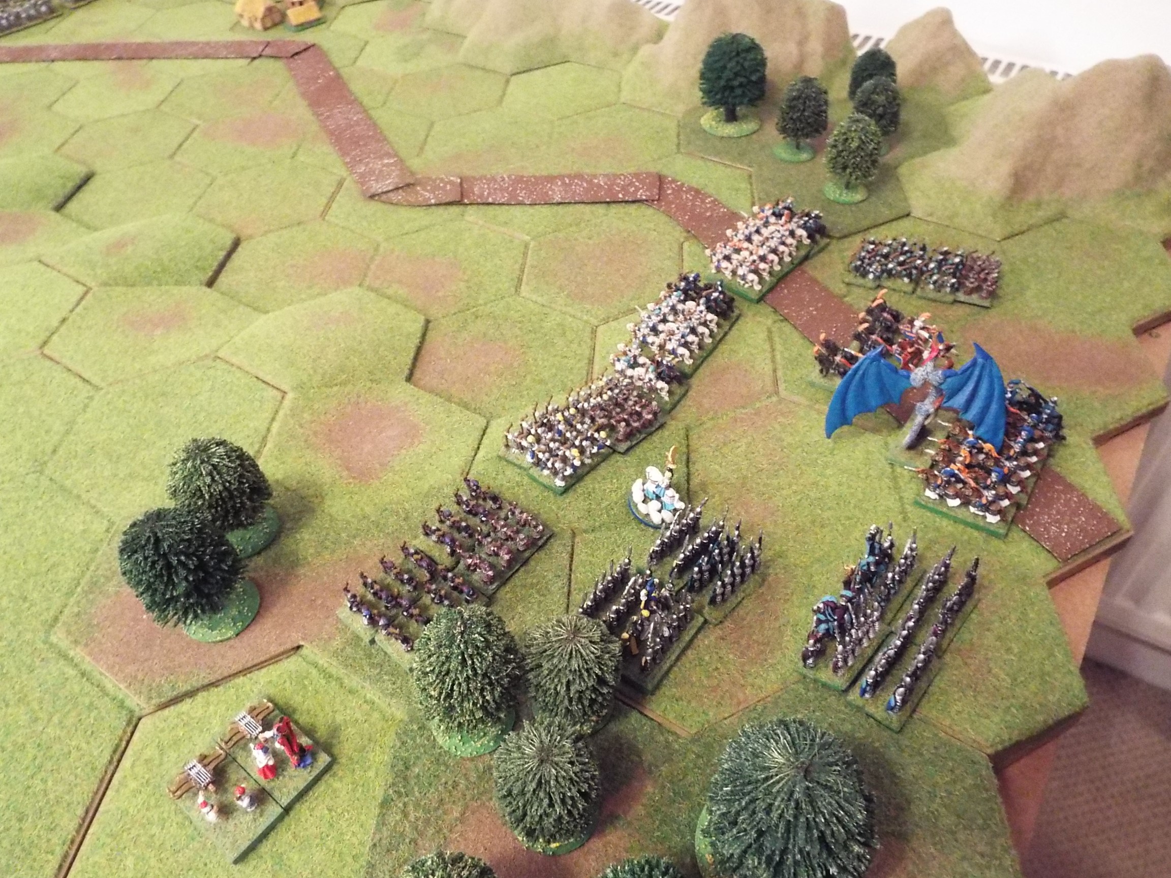 The elf artillery was placed under Hold Fire, and the Treemen and supporting infantry continued to advance.